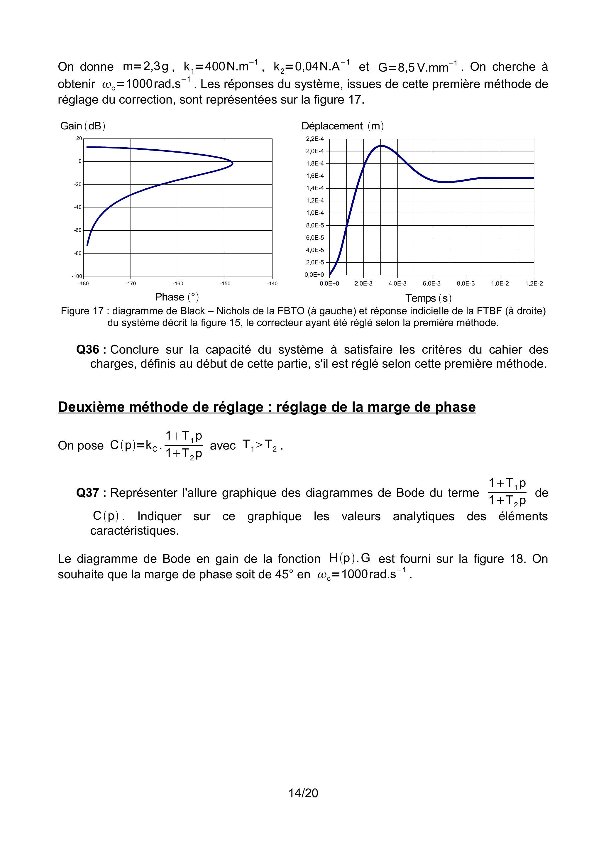 Q36 : Conclure sur la capacité du système à satisfaire les critères du cahier des charges, définis au début de cette partie, s'il est réglé selon cette première méthode.