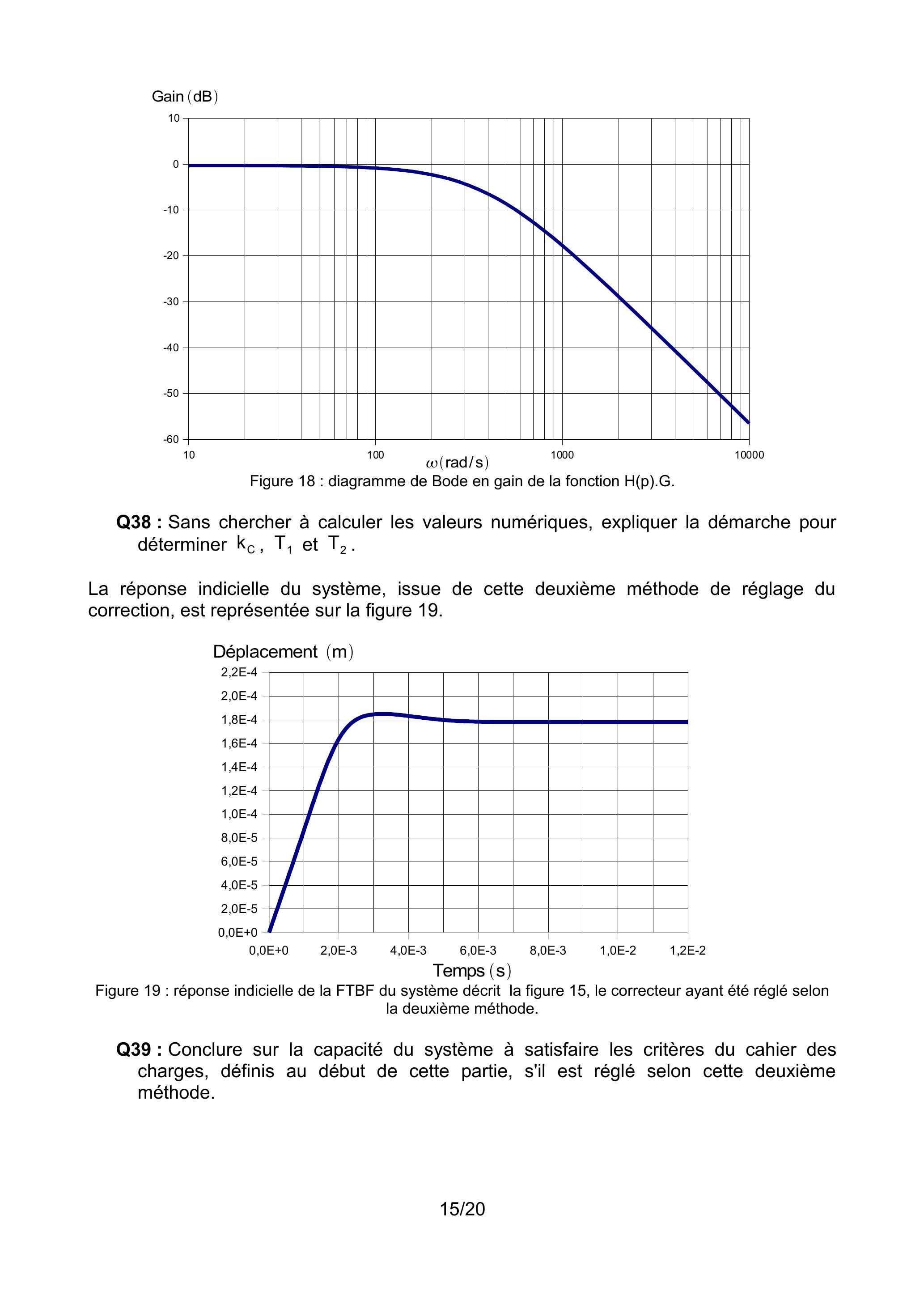 Q40 : Indiquer si le système réagira plutôt selon la réponse de la figure 17 ou plutôt selon la réponse de la figure 19. Conclure vis-a-vis du cahier des charges.
