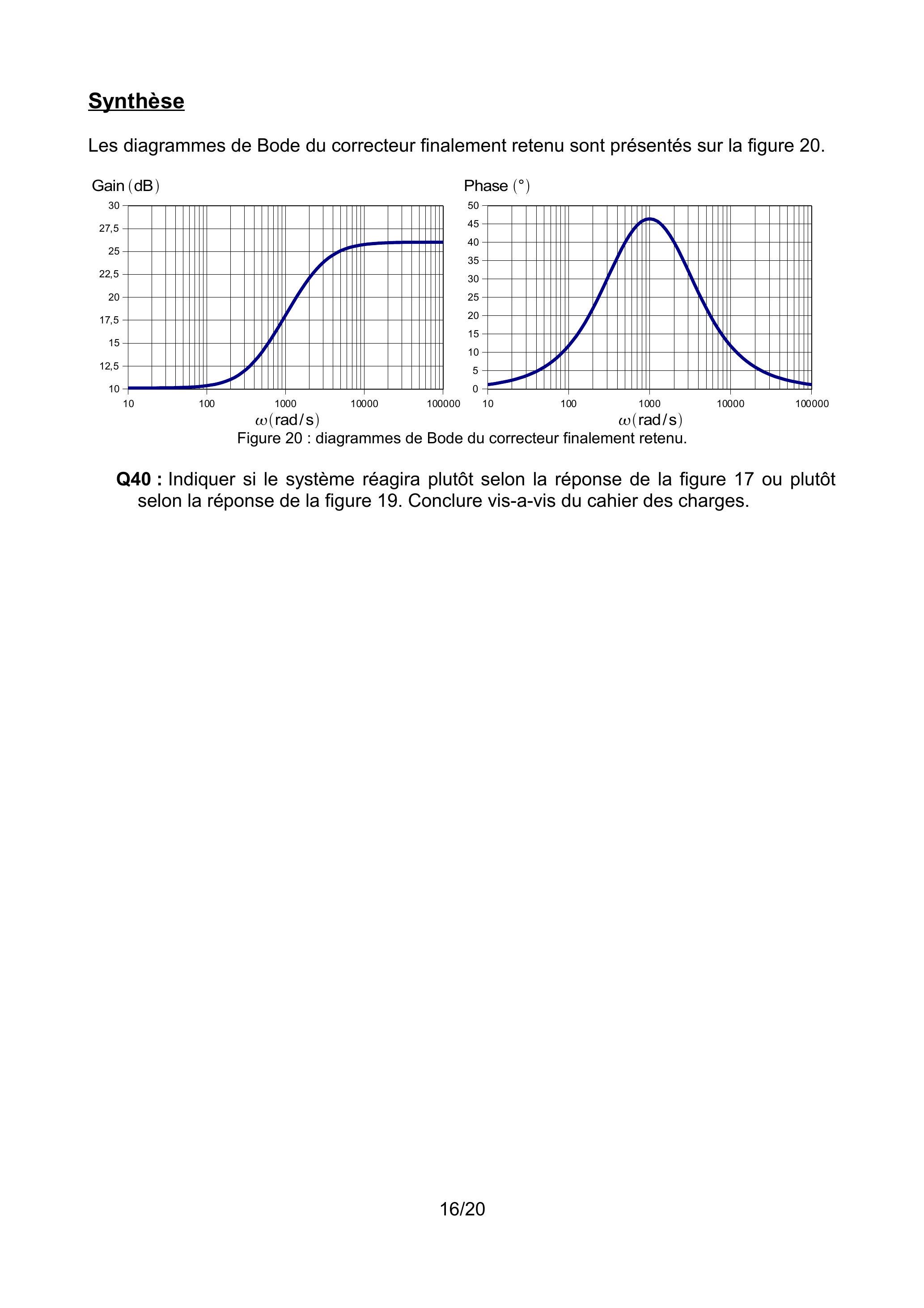 Les diagrammes de Bode du correcteur finalement retenu sont présentés sur la figure 20.
