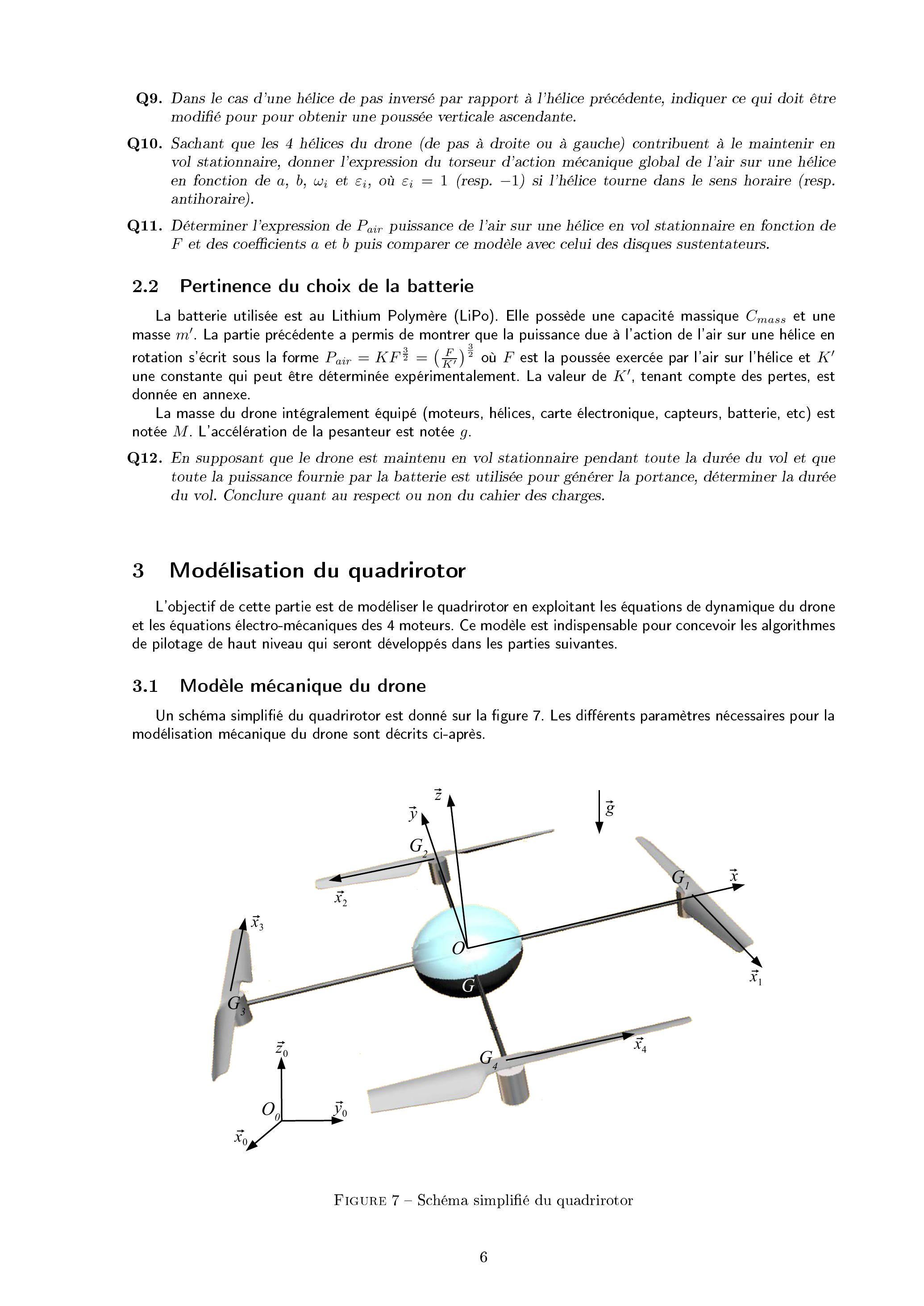 Dans cette partie, on cherche à vérifier à l'aide de modèles simples qu'un vol stationnaire est possible, compte tenu du poids du drone, des caractéristiques de la batterie et du cahier des charges à respecter.