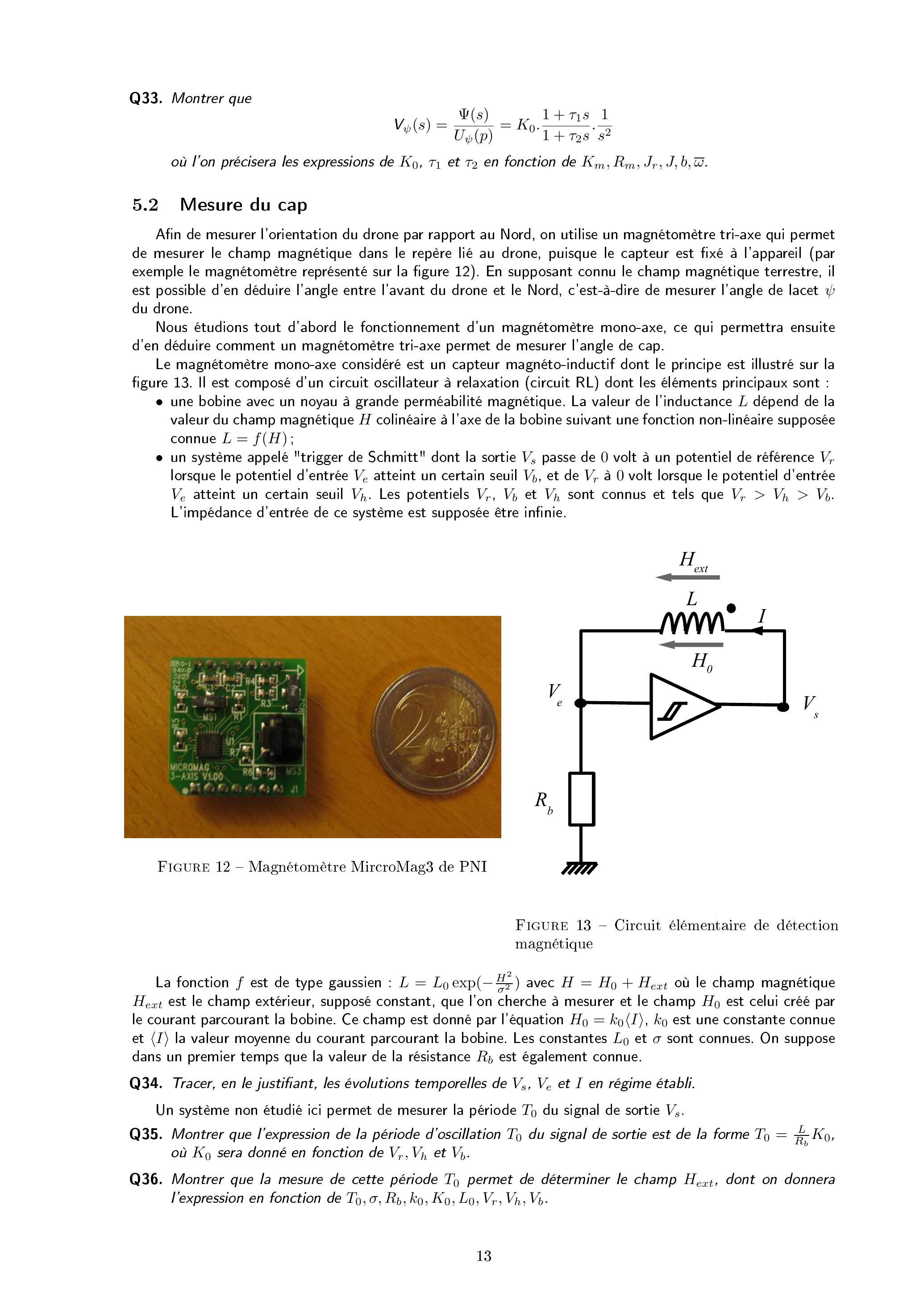 L'objectif de cette partie est de contrôler le cap du quadrirotor (direction de l'avant du drone par rapport au Nord), angle noté , grâce à un asservissement tenant compte du cap de consigne et de la mesure de fournie par le magnétomètre tri-axe.