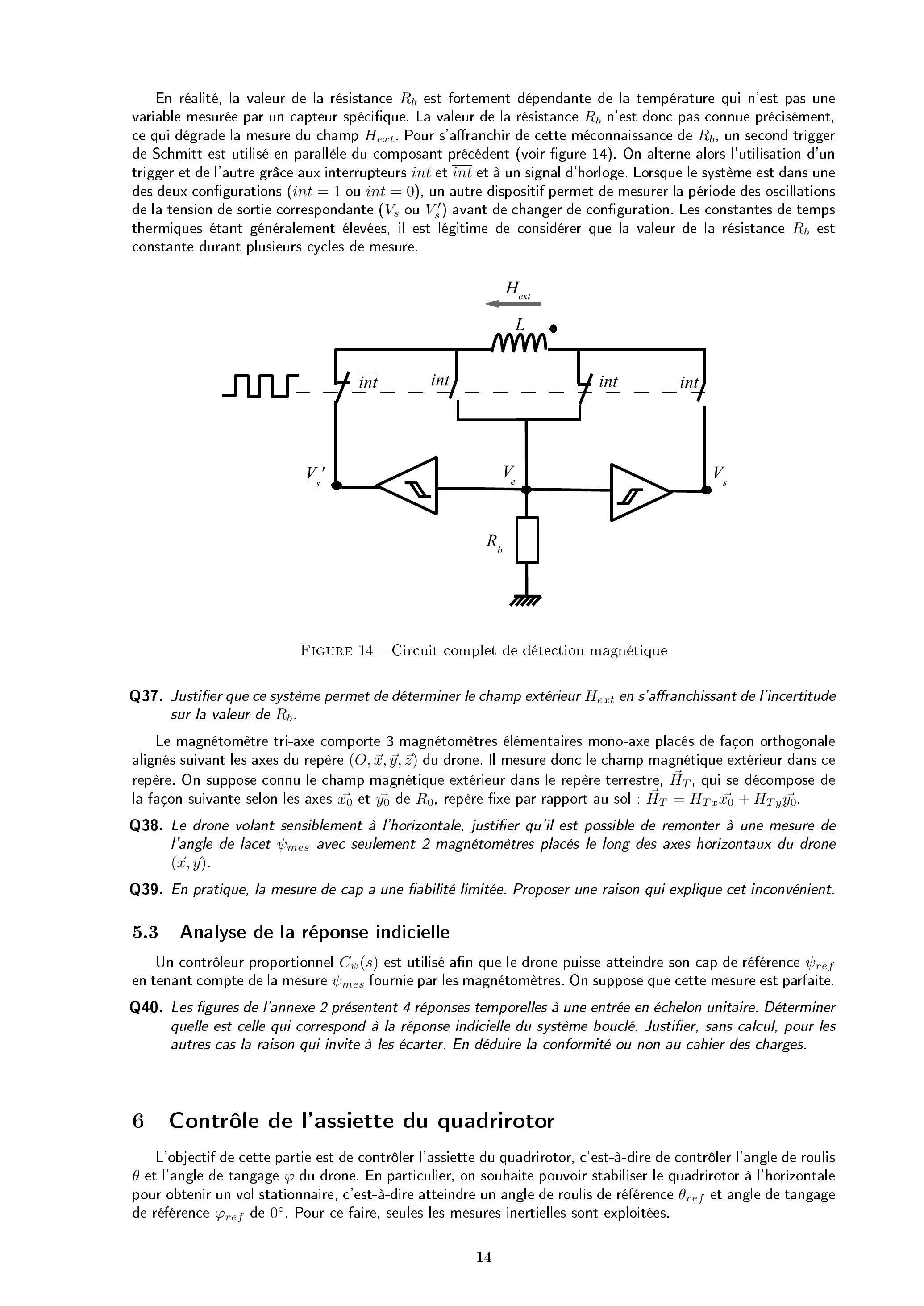 Q38. Le drone volant sensiblement à l'horizontale, justifier qu'il est possible de remonter à une mesure de l'angle de lacet avec seulement 2 magnétomètres placés le long des axes horizontaux du drone .