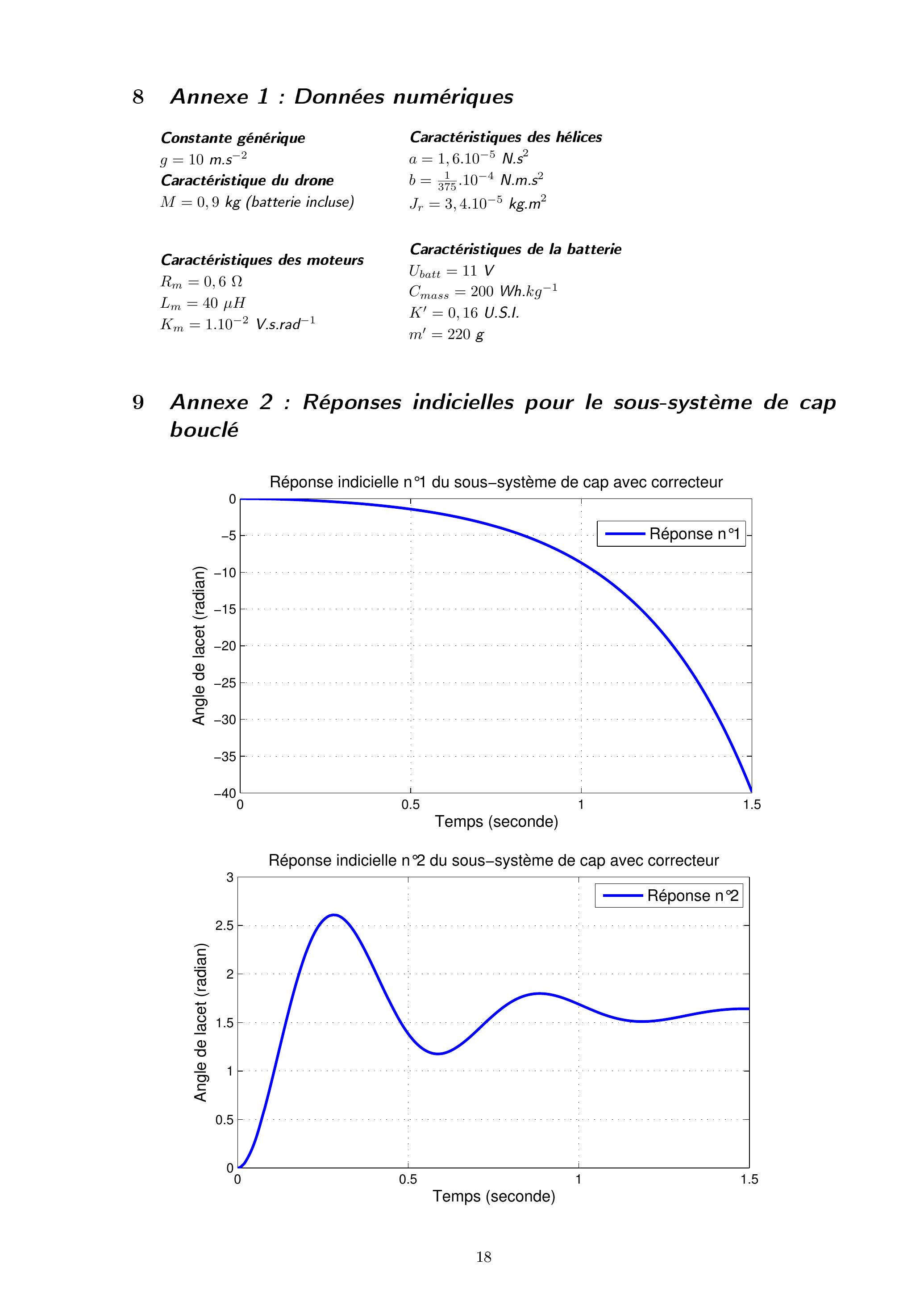 9 Annexe 2 : Réponses indicielles pour le sous-système de cap bouclé