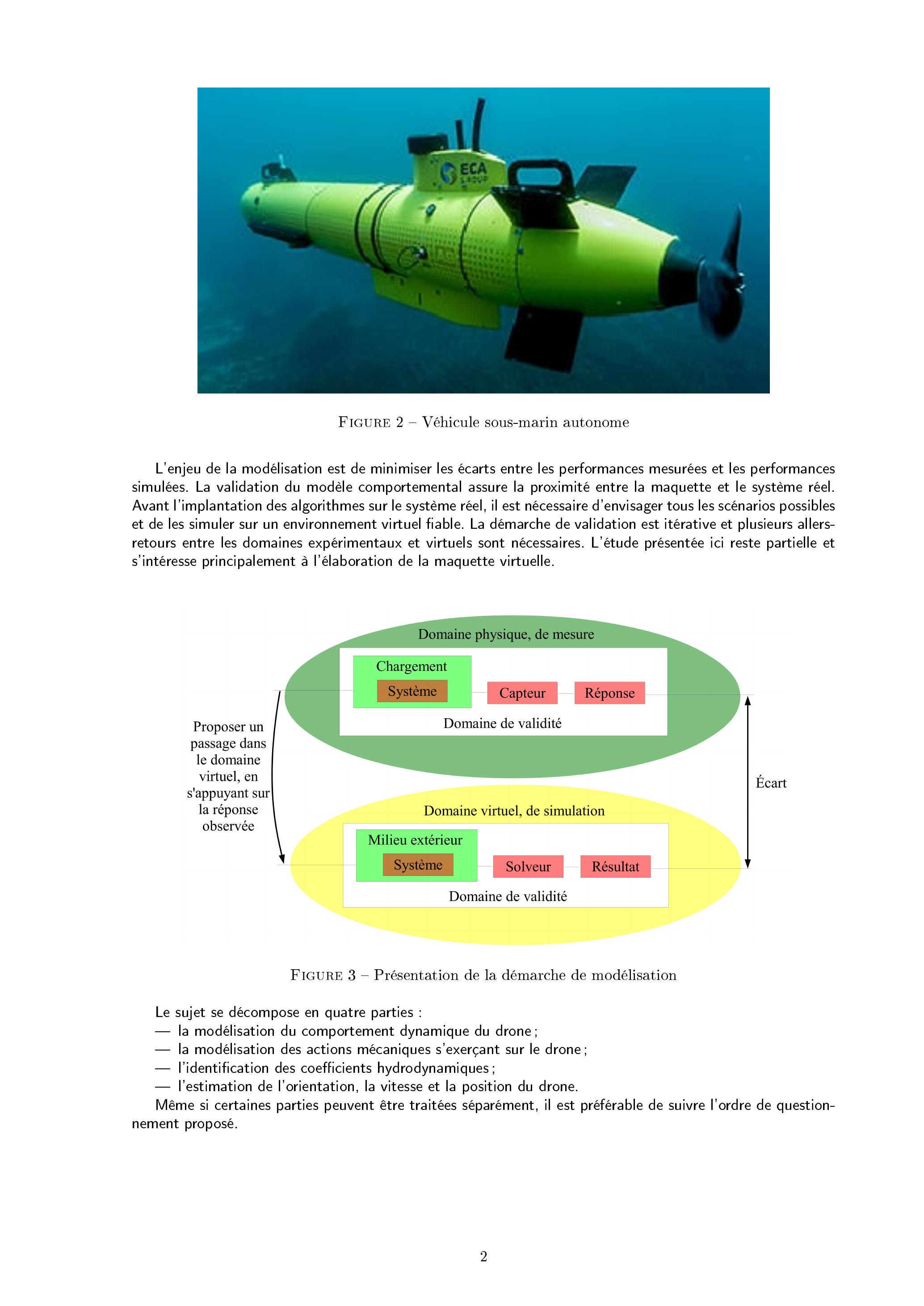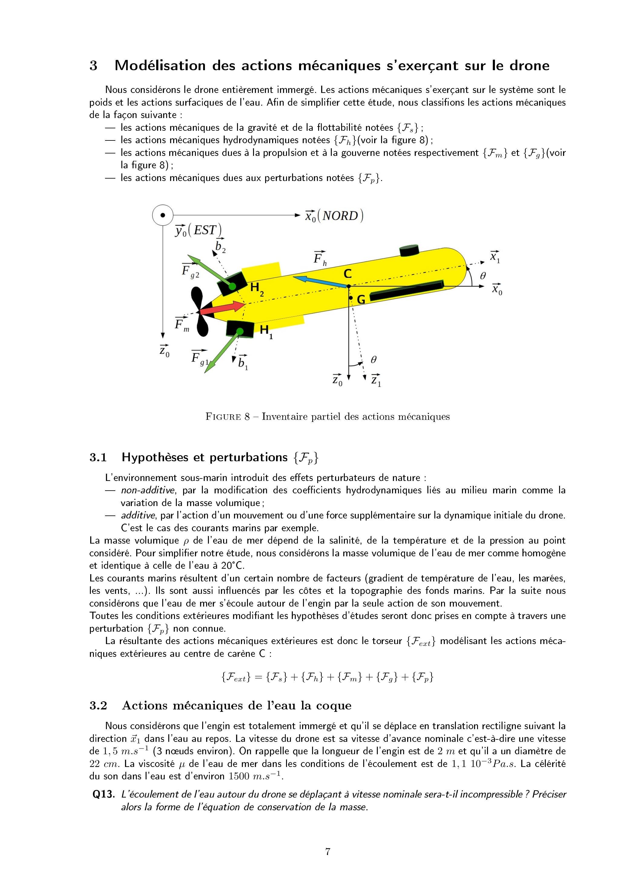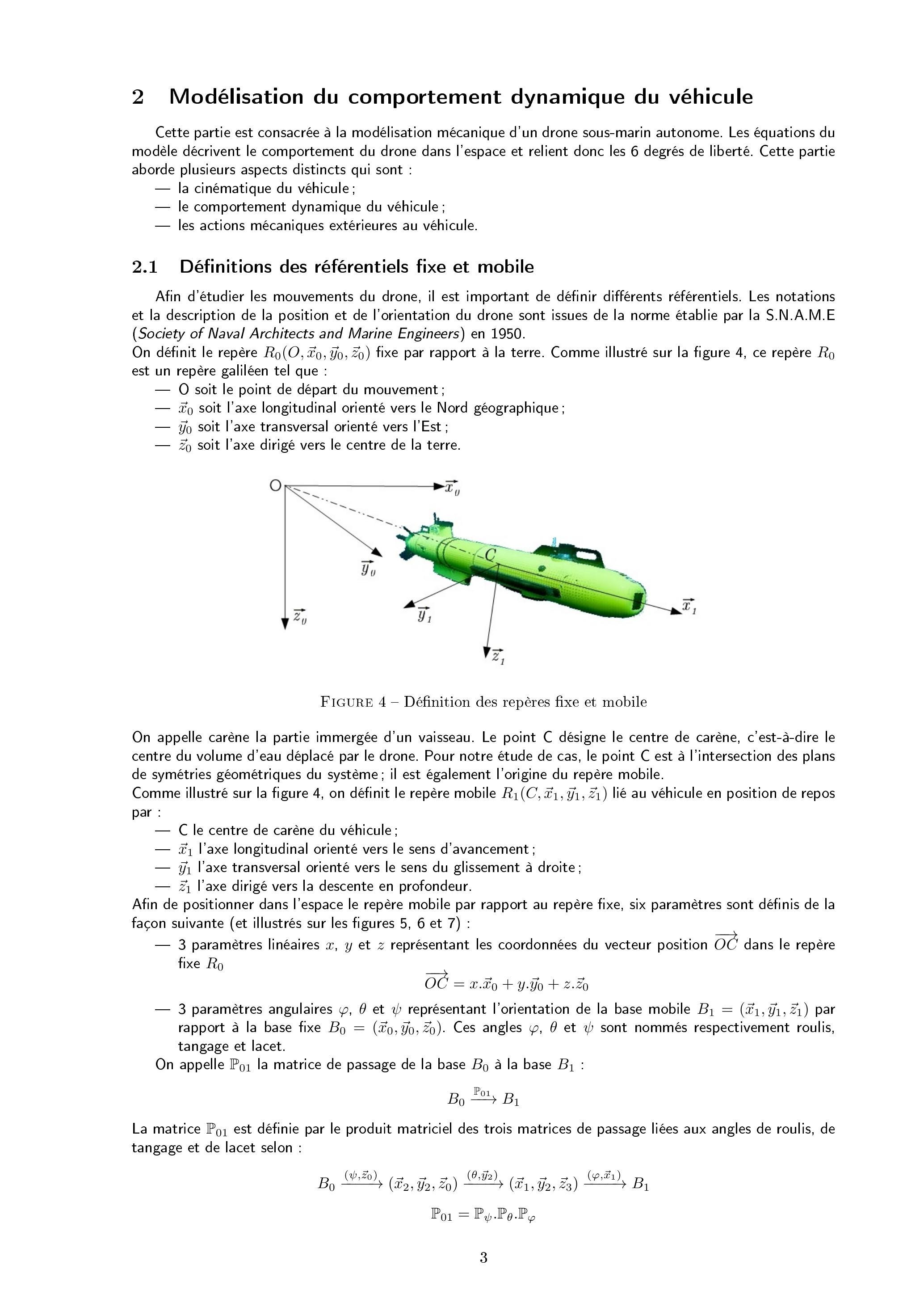 Cette partie est consacrée à la modélisation mécanique d'un drone sous-marin autonome. Les équations du modèle décrivent le comportement du drone dans l'espace et relient donc les 6 degrés de liberté. Cette partie aborde plusieurs aspects distincts qui sont :