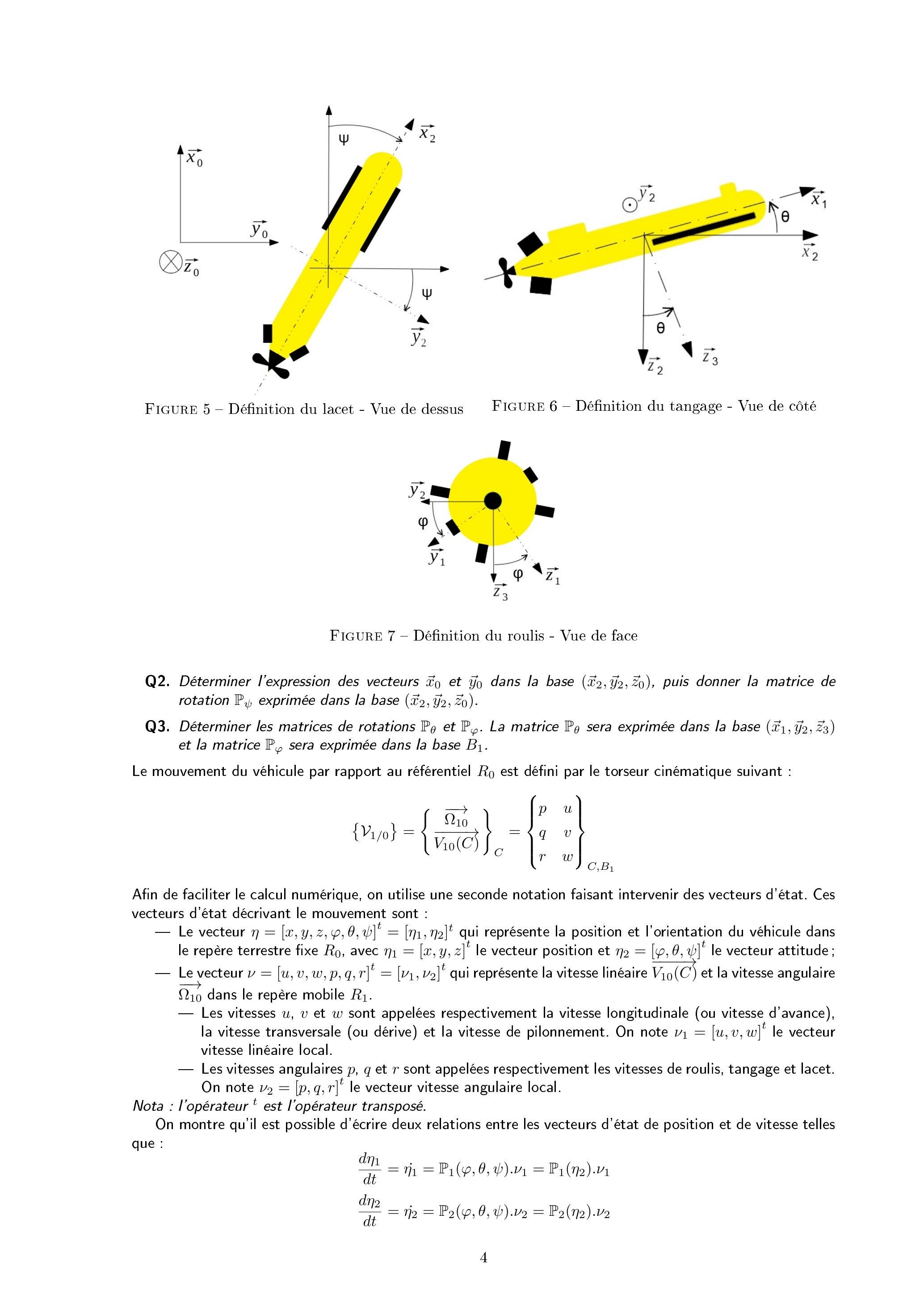 Q9. Calculer , la vitesse au point du drone dans son mouvement par rapport au repère fixe, en fonction des paramètres et .