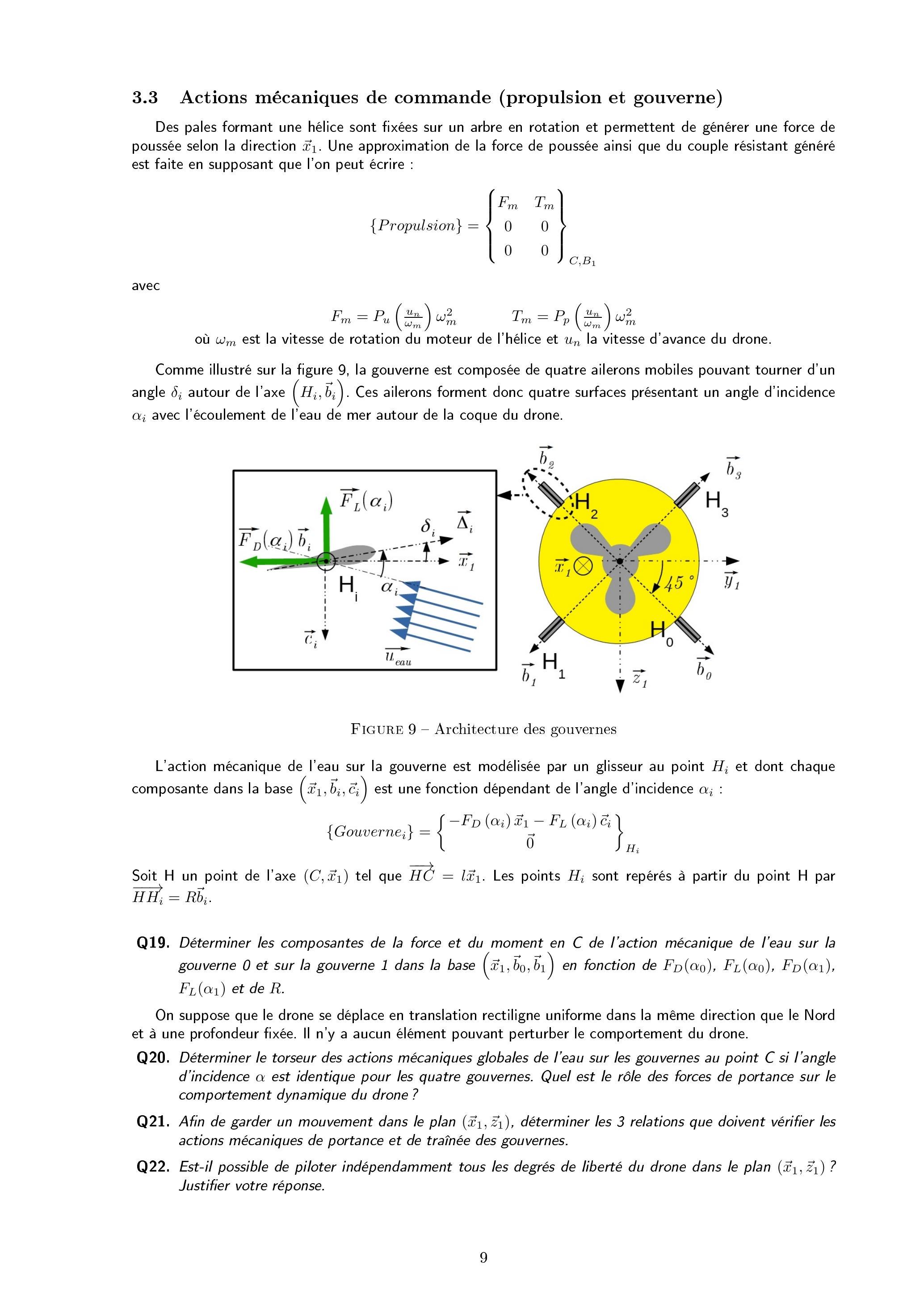 la modélisation des actions mécaniques s'exerçant sur le drone;