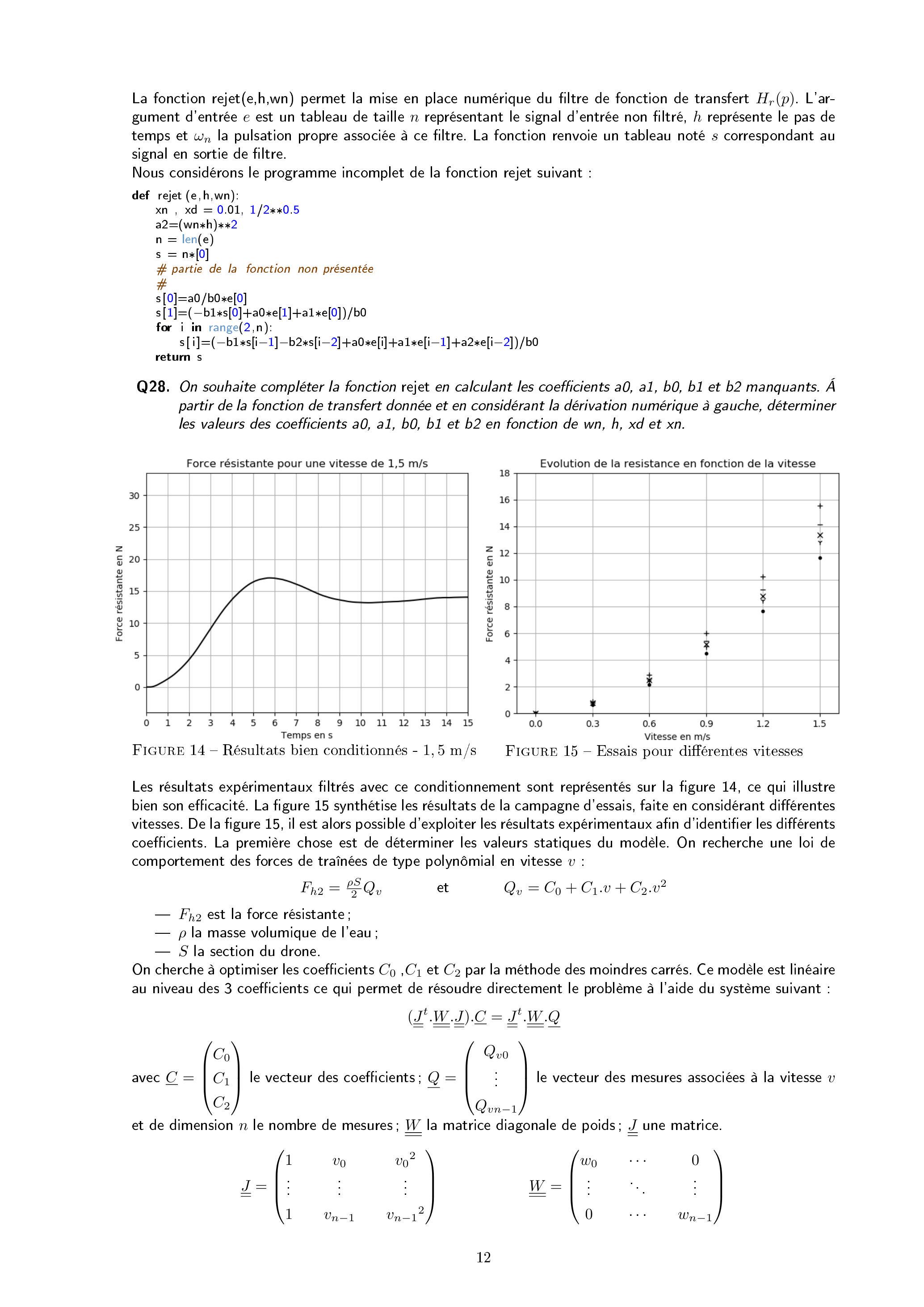 Q28. On souhaite compléter la fonction rejet en calculant les coefficients a0, a1, b0, b1 et b2 manquants. Á partir de la fonction de transfert donnée et en considérant la dérivation numérique à gauche, déterminer les valeurs des coefficients a0, a1, b0, b1 et b2 en fonction de wn, et .