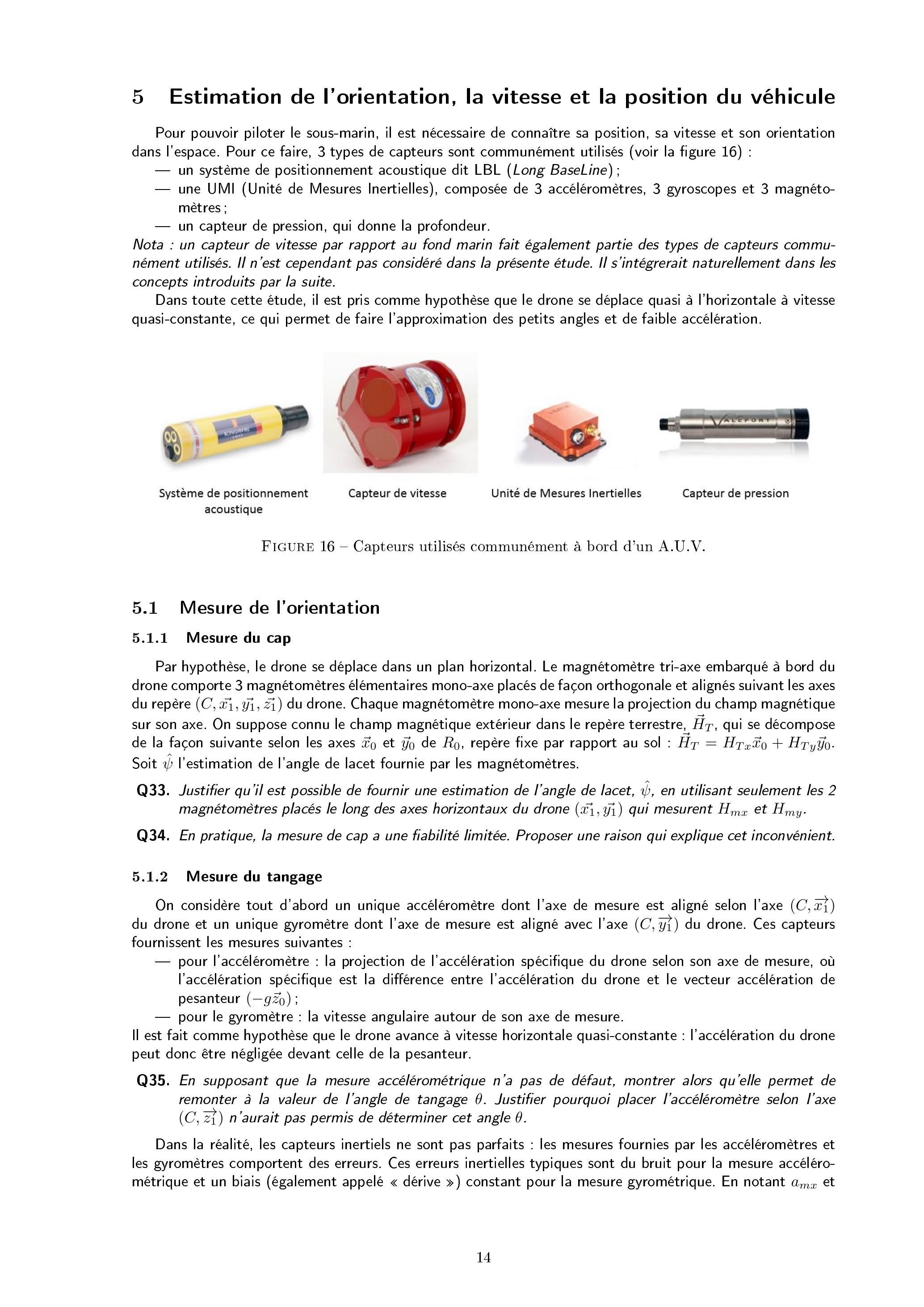 Pour pouvoir piloter le sous-marin, il est nécessaire de connaître sa position, sa vitesse et son orientation dans l'espace. Pour ce faire, 3 types de capteurs sont communément utilisés (voir la figure 16) :
