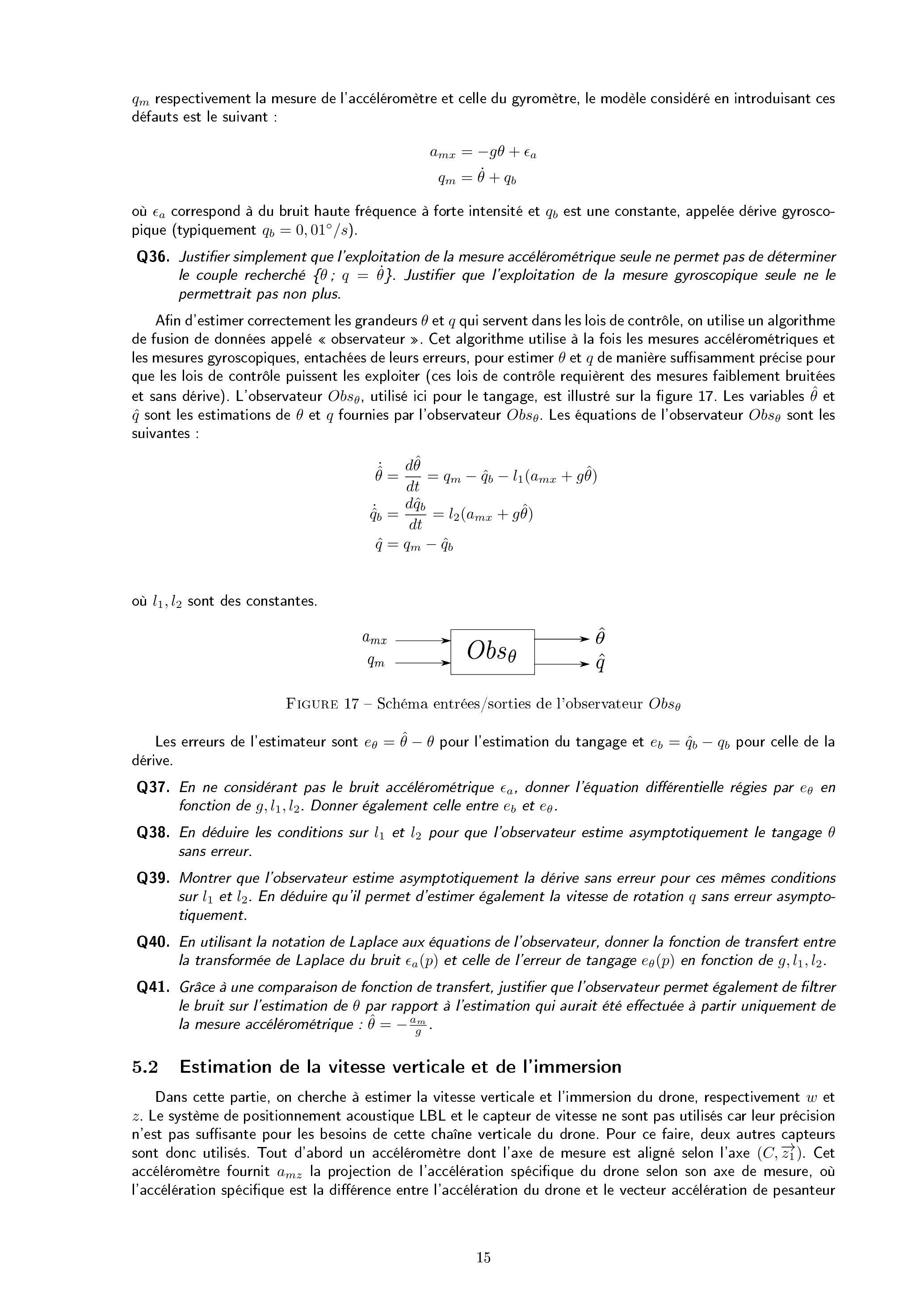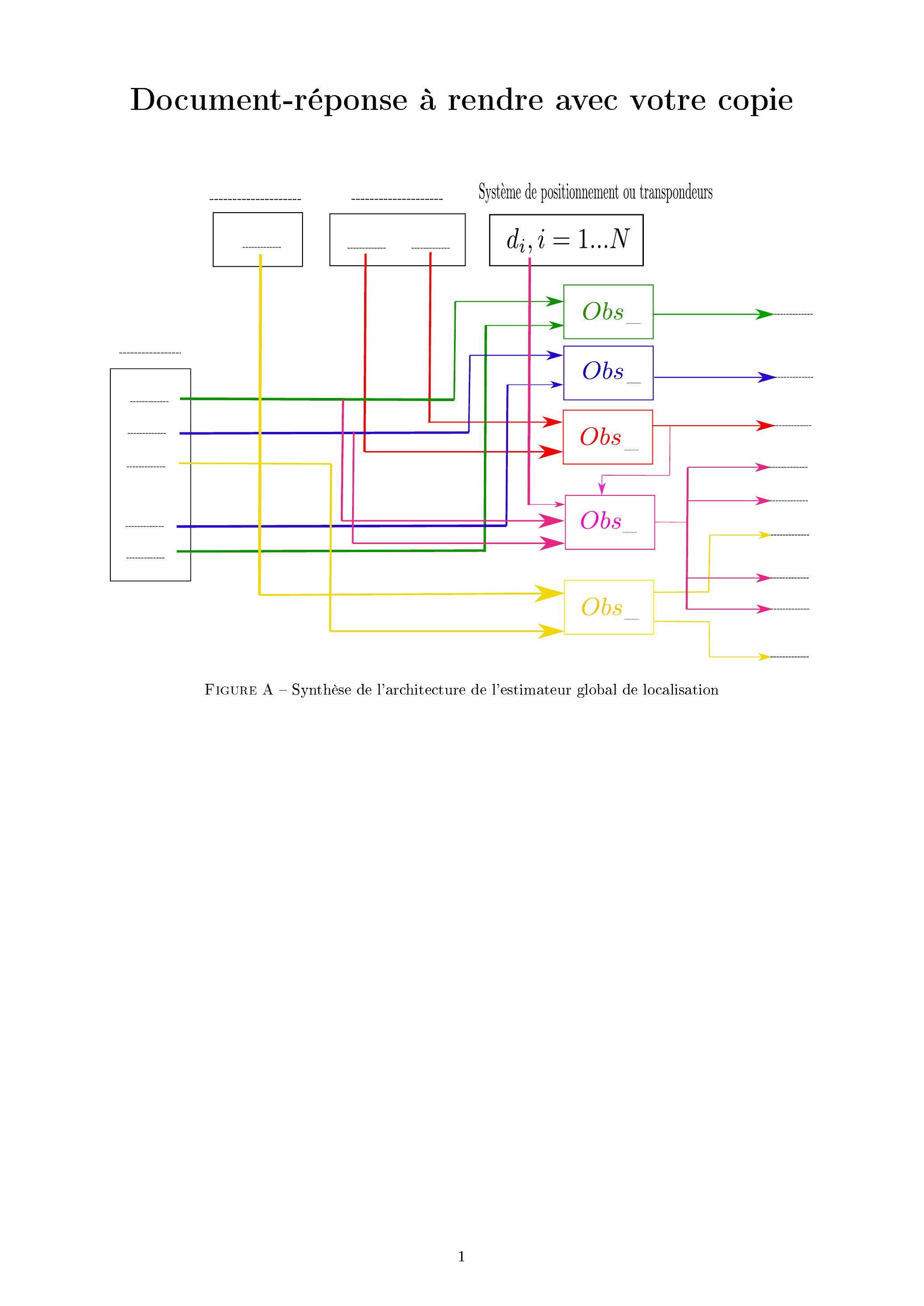 Dans les paragraphes précédents, les estimateurs de vitesse, de position et d'orientation ont été étudiés en tirant partie d'une certaine indépendance des équations de mouvement du drone compte tenu des hypothèses prises. La figure du document réponse est une synthèse de ces études.