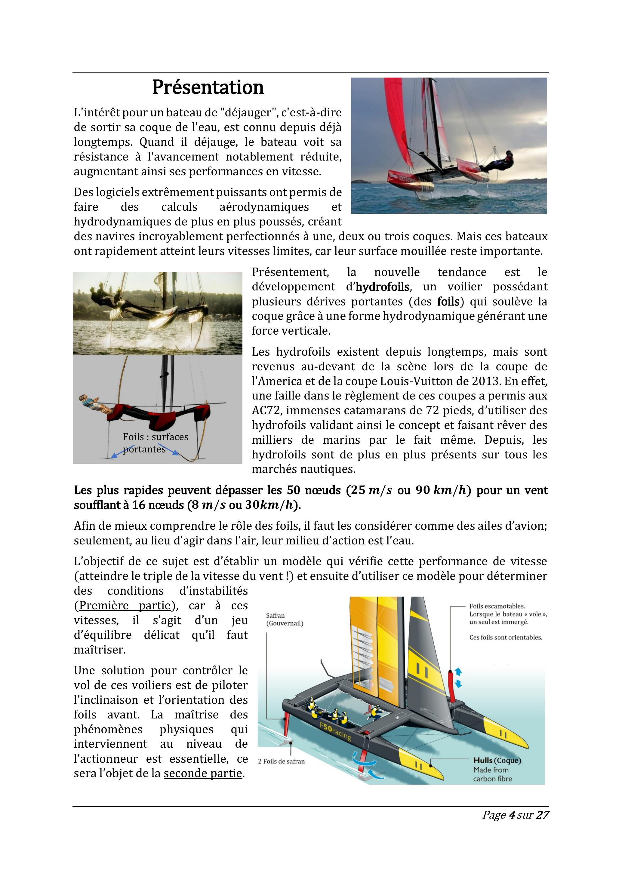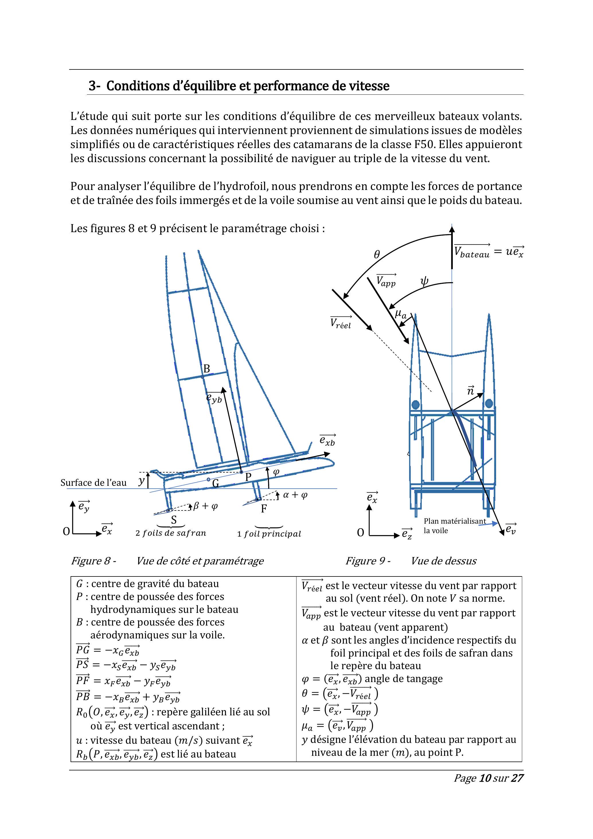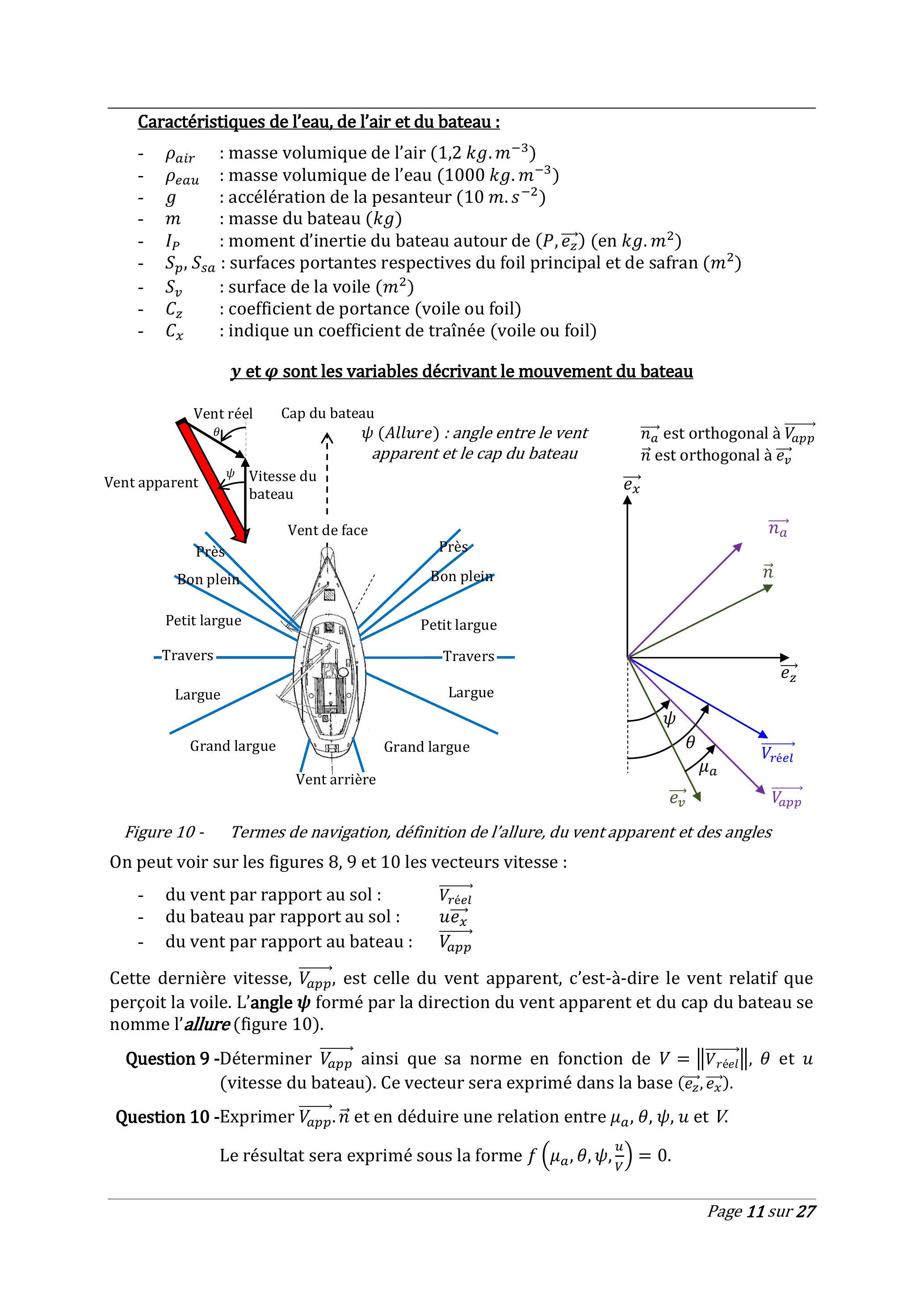 L'objectif de ce sujet est d'établir un modèle qui vérifie cette performance de vitesse (atteindre le triple de la vitesse du vent !) et ensuite d'utiliser ce modèle pour déterminer des conditions d'instabilités (Première partie), car à ces vitesses, il s'agit d'un jeu d'équilibre délicat qu'il faut maîtriser.