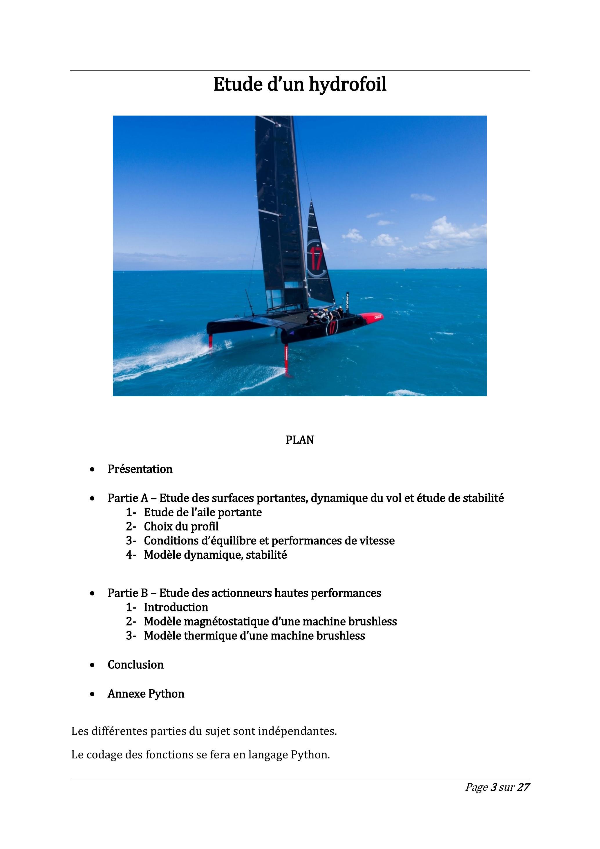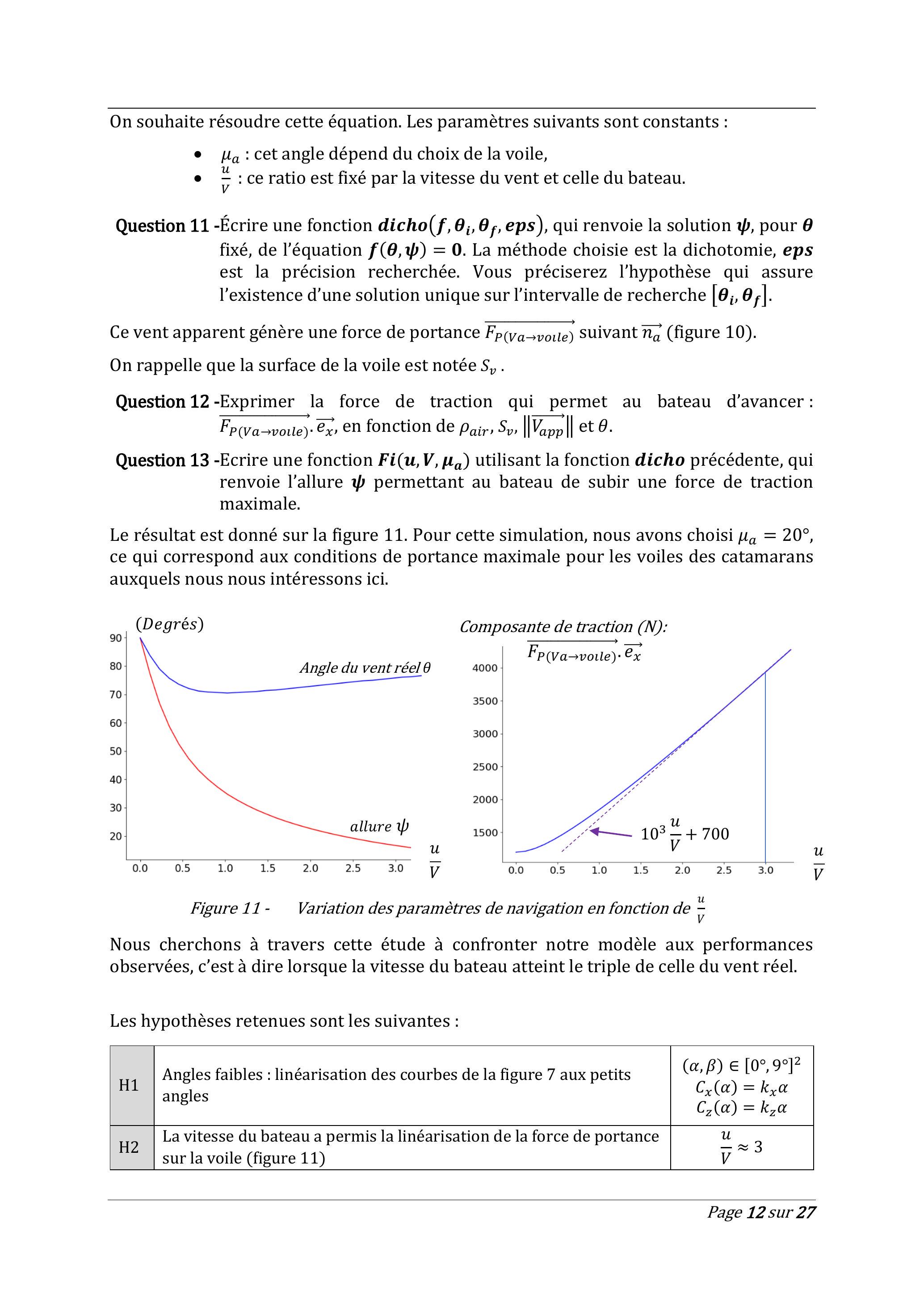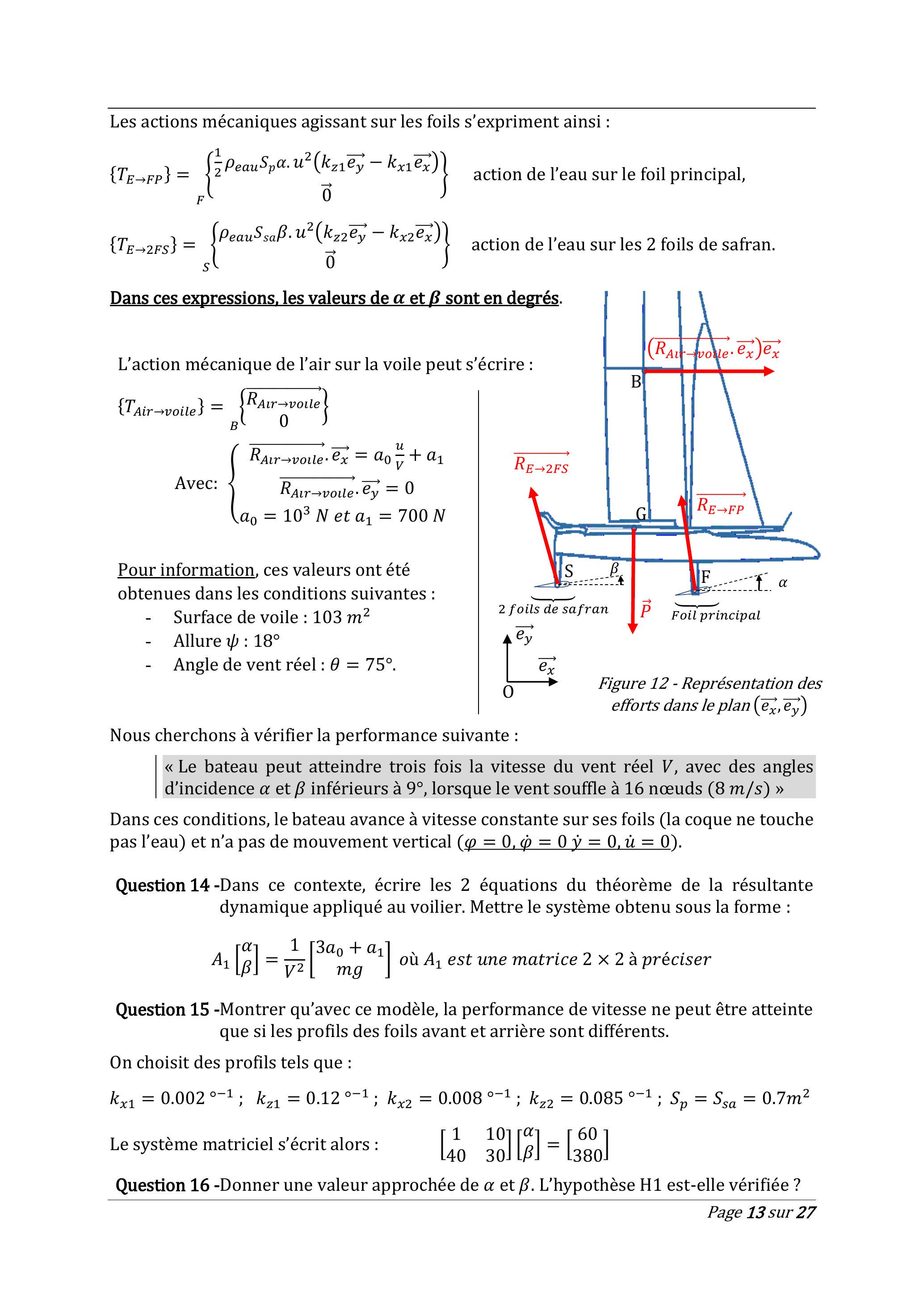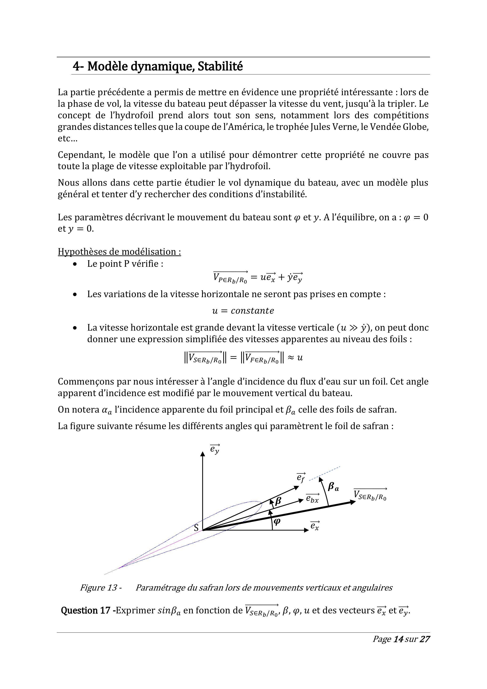 L'objectif de ce sujet est d'établir un modèle qui vérifie cette performance de vitesse (atteindre le triple de la vitesse du vent !) et ensuite d'utiliser ce modèle pour déterminer des conditions d'instabilités (Première partie), car à ces vitesses, il s'agit d'un jeu d'équilibre délicat qu'il faut maîtriser.