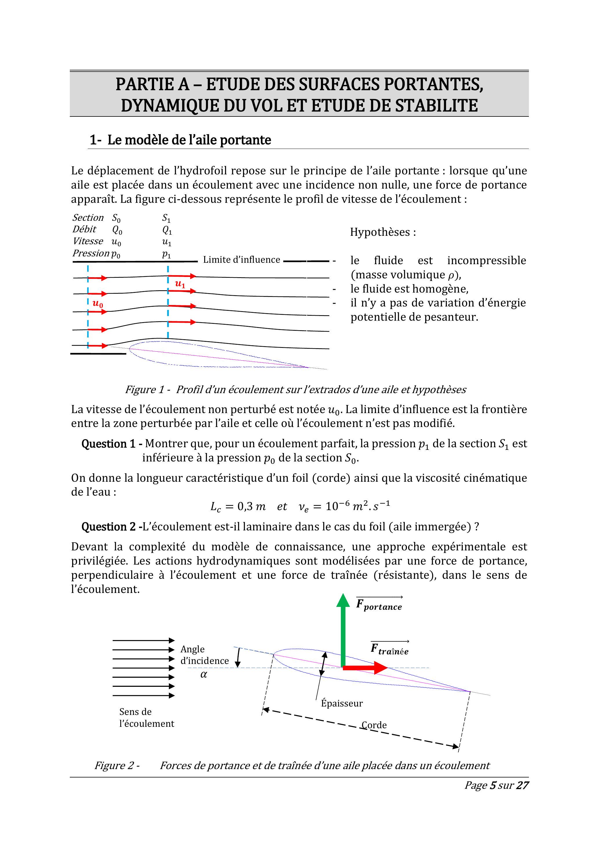 Partie A - Etude des surfaces portantes, dynamique du vol et étude de stabilité