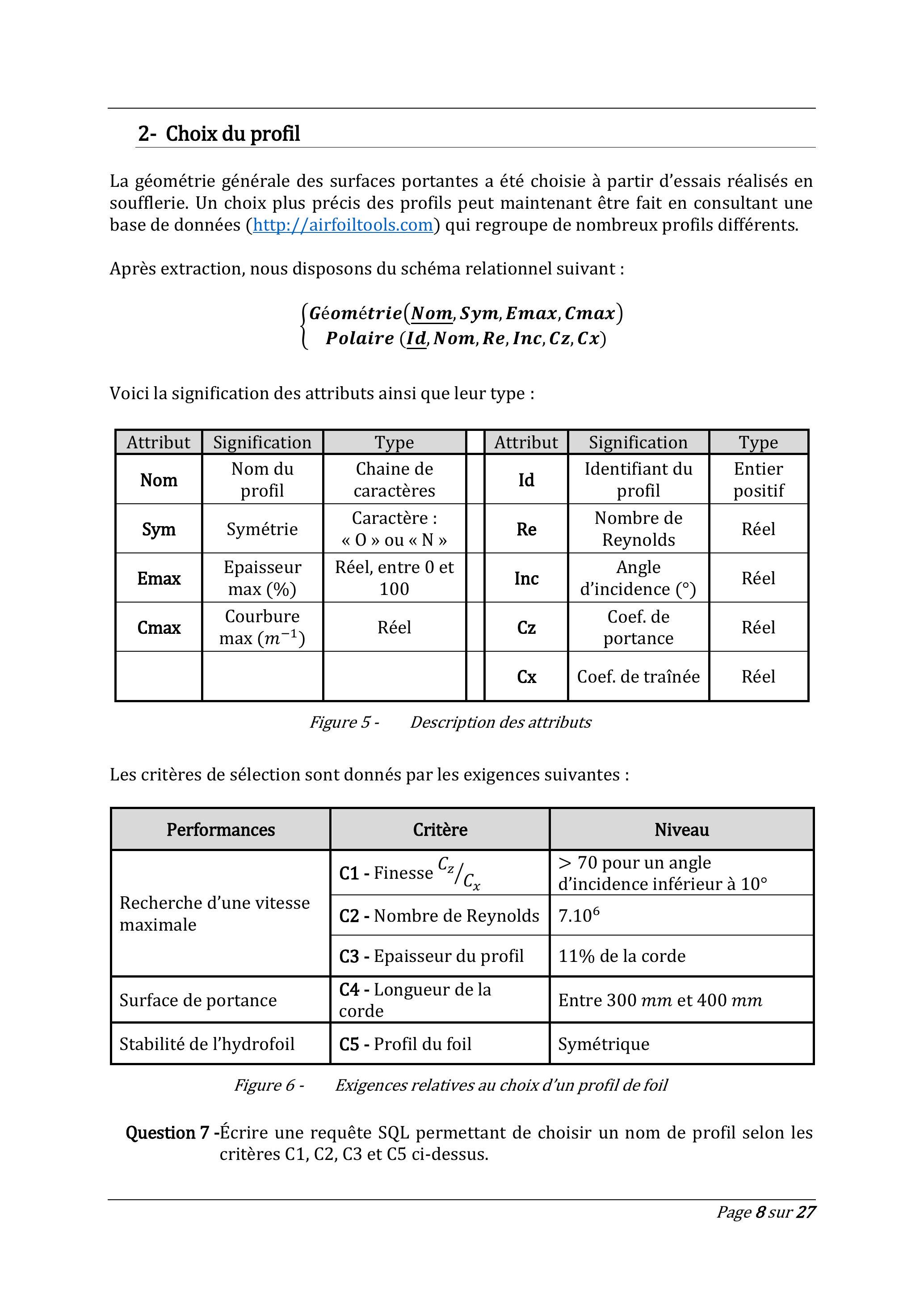 La géométrie générale des surfaces portantes a été choisie à partir d'essais réalisés en soufflerie. Un choix plus précis des profils peut maintenant être fait en consultant une base de données (http://airfoiltools.com) qui regroupe de nombreux profils différents.