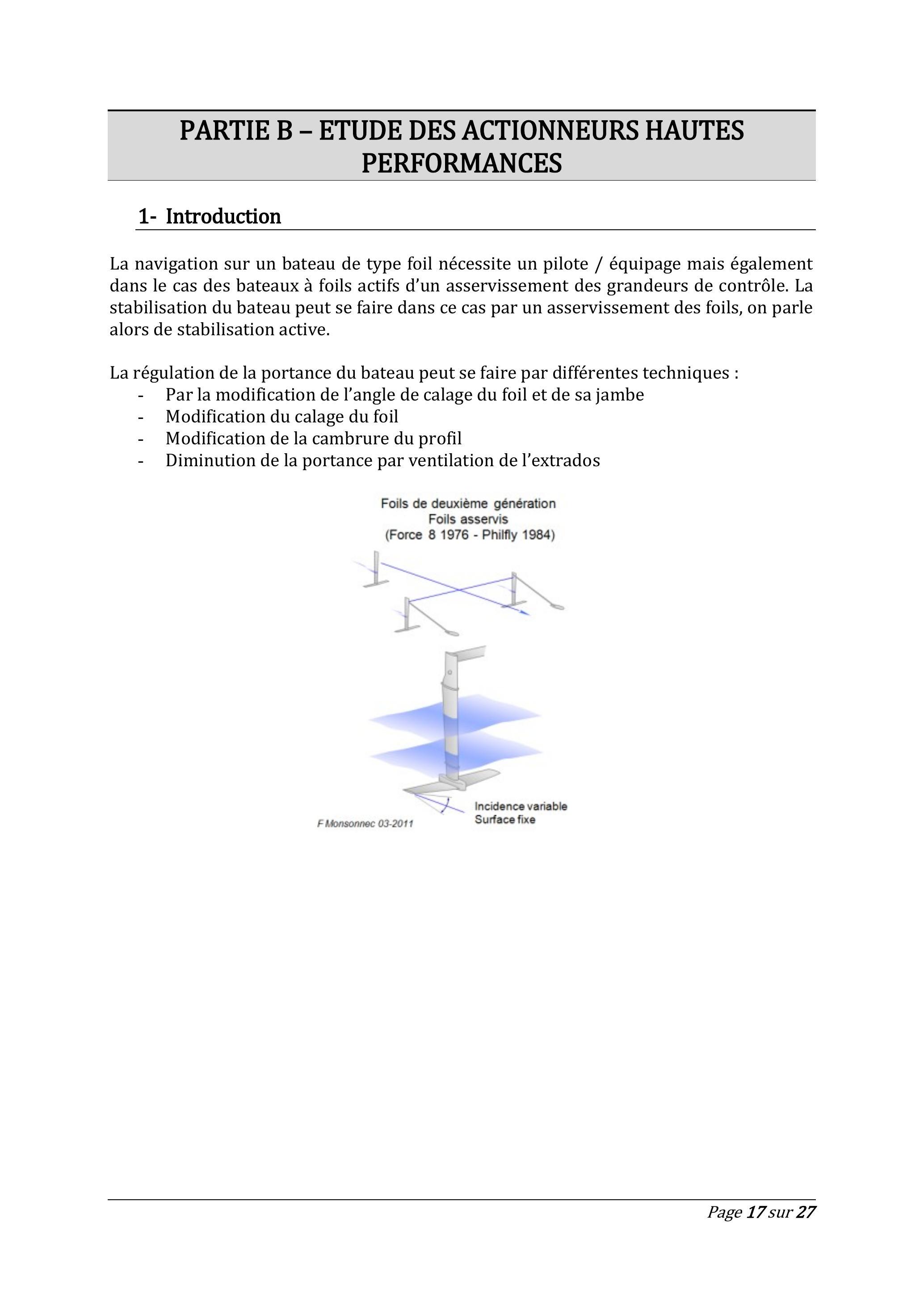 Une solution pour contrôler le vol de ces voiliers est de piloter l'inclinaison et l'orientation des foils avant. La maîtrise des phénomènes physiques qui interviennent au niveau de l'actionneur est essentielle, ce sera l'objet de la seconde partie.