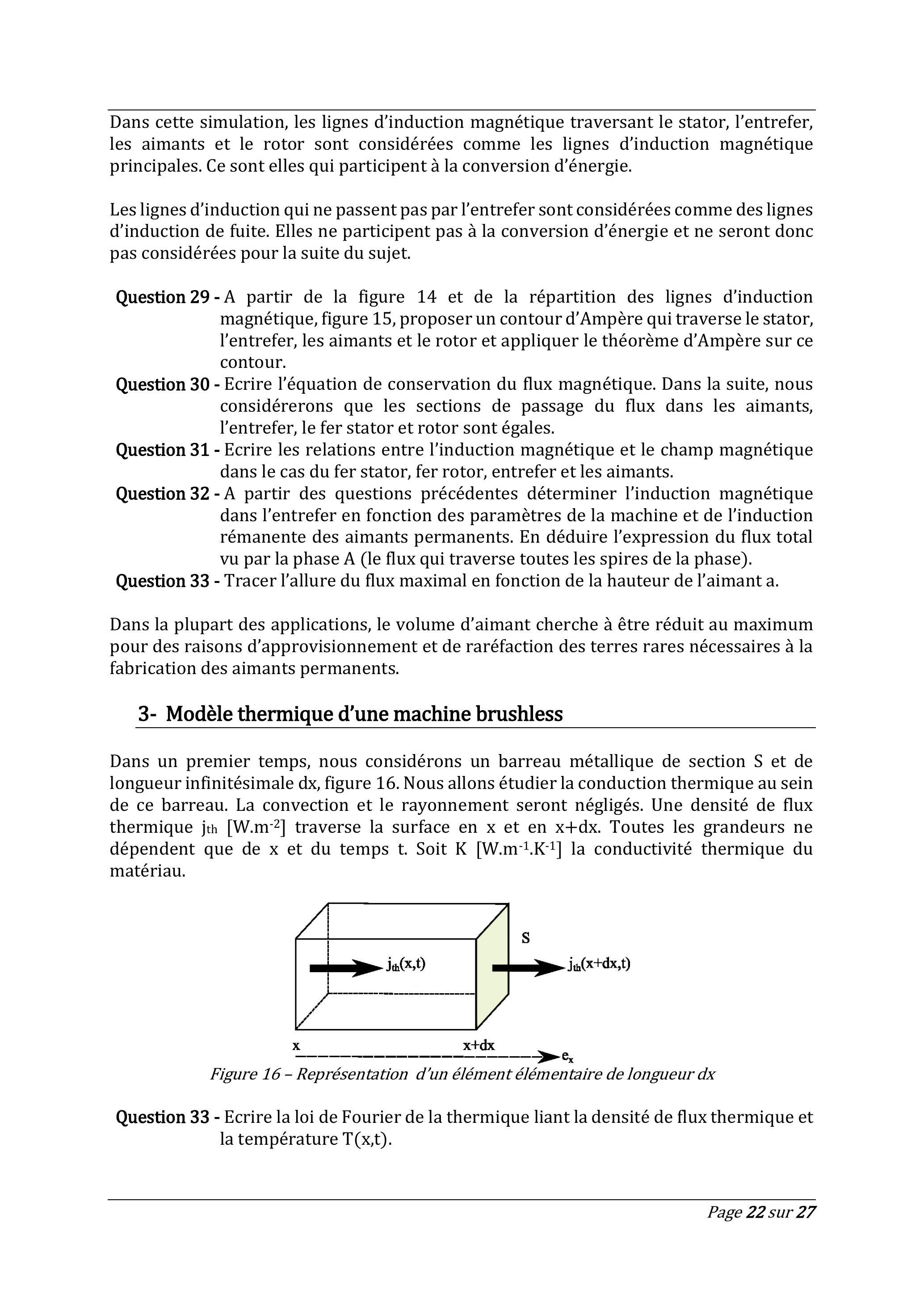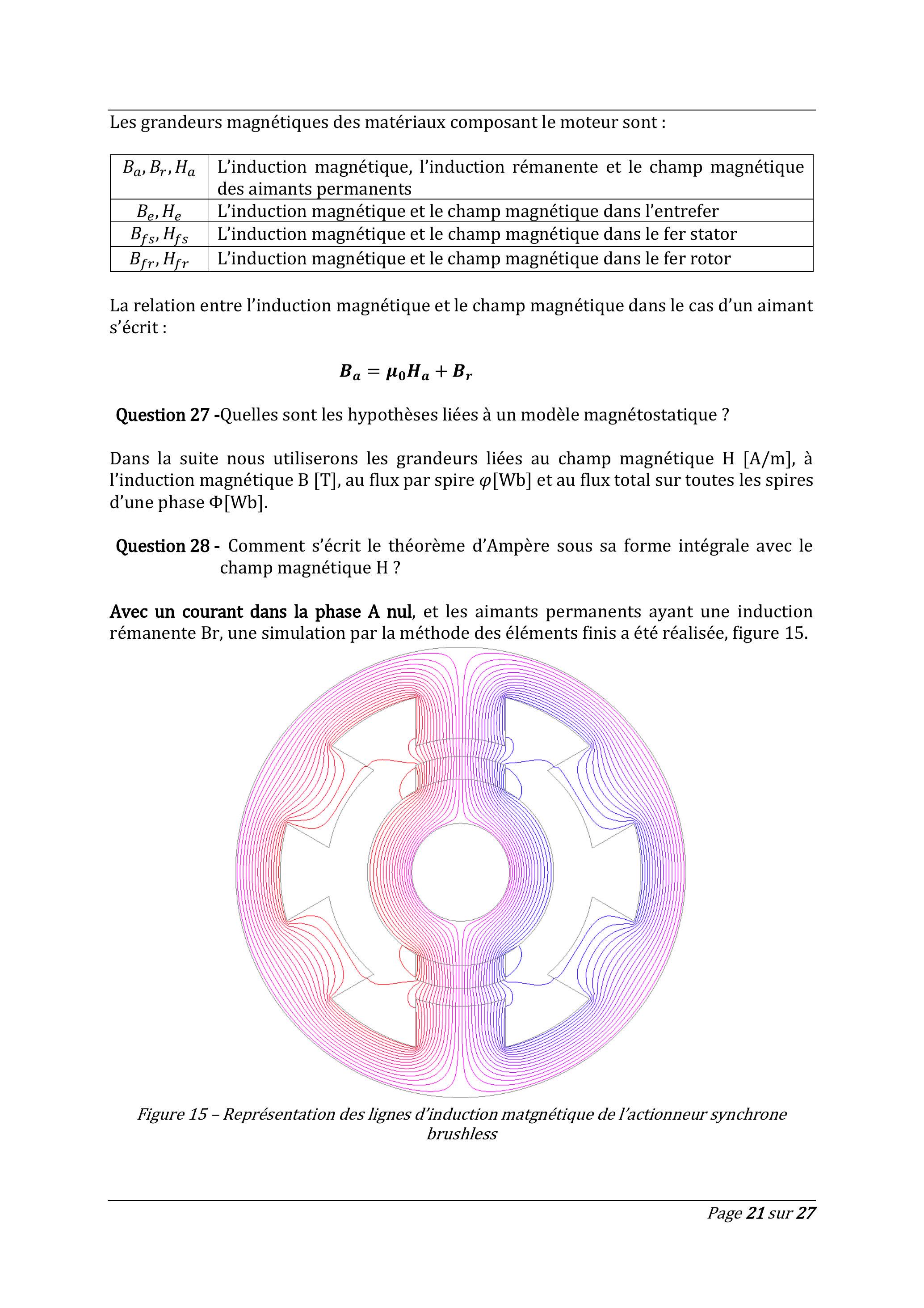 Question 29 - A partir de la figure 14 et de la répartition des lignes d'induction magnétique, figure 15, proposer un contour d'Ampère qui traverse le stator, l'entrefer, les aimants et le rotor et appliquer le théorème d'Ampère sur ce contour.