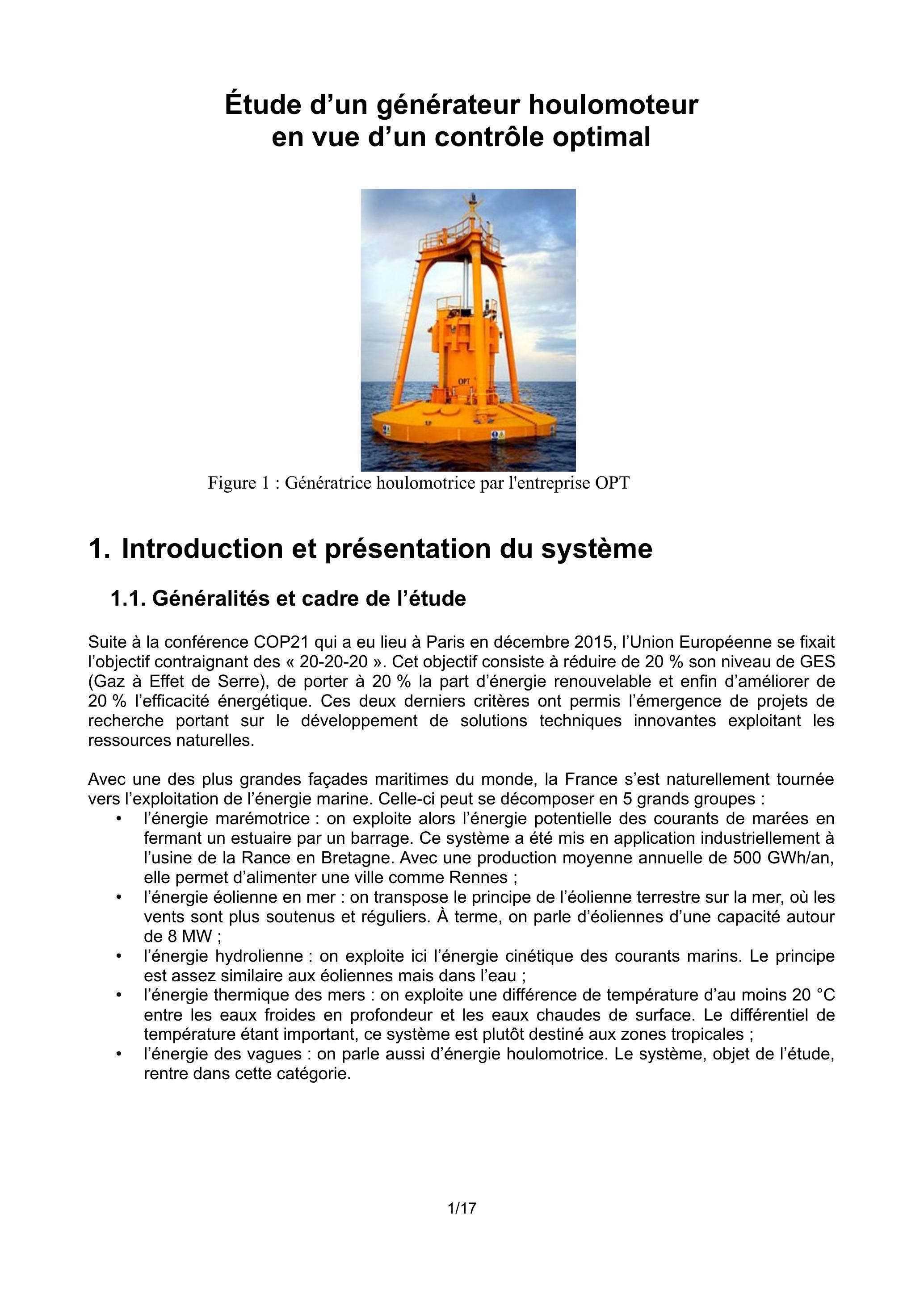 Étude d'un générateur houlomoteur en vue d'un contrôle optimal