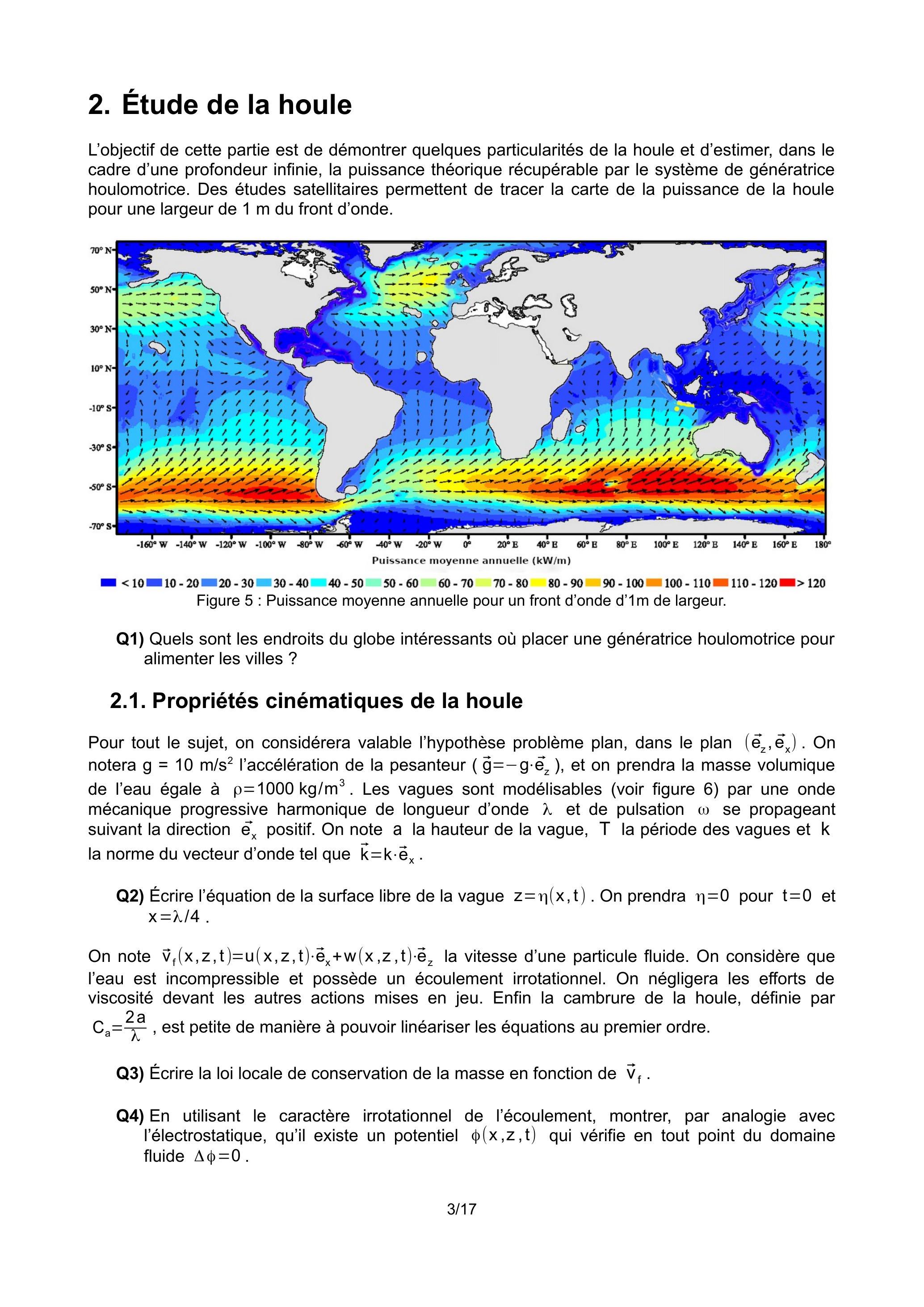 Q17) Calculer la valeur numérique de la puissance houlomotrice potentiellement récupérable. Valider le résultat avec les données de la figure 5.