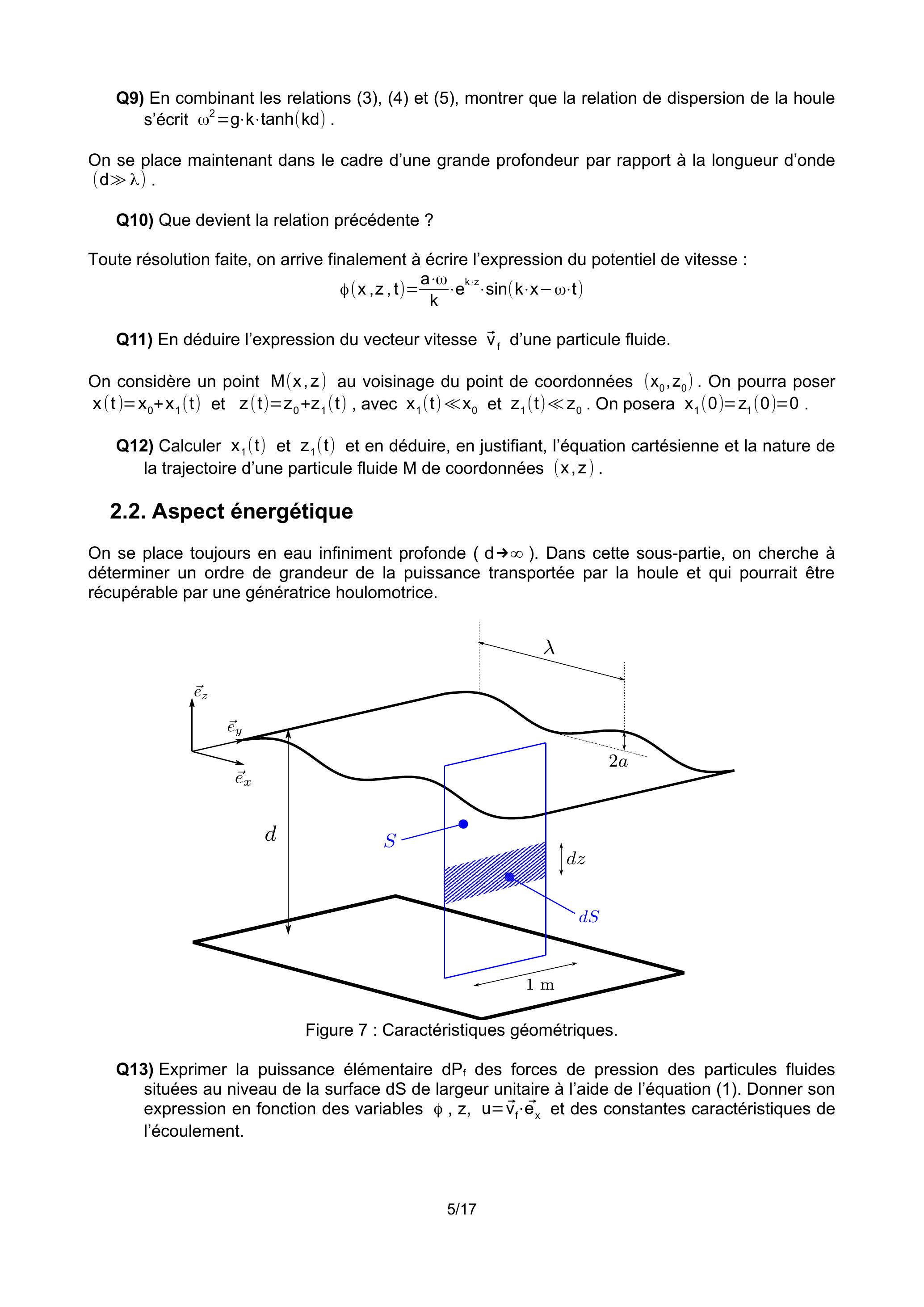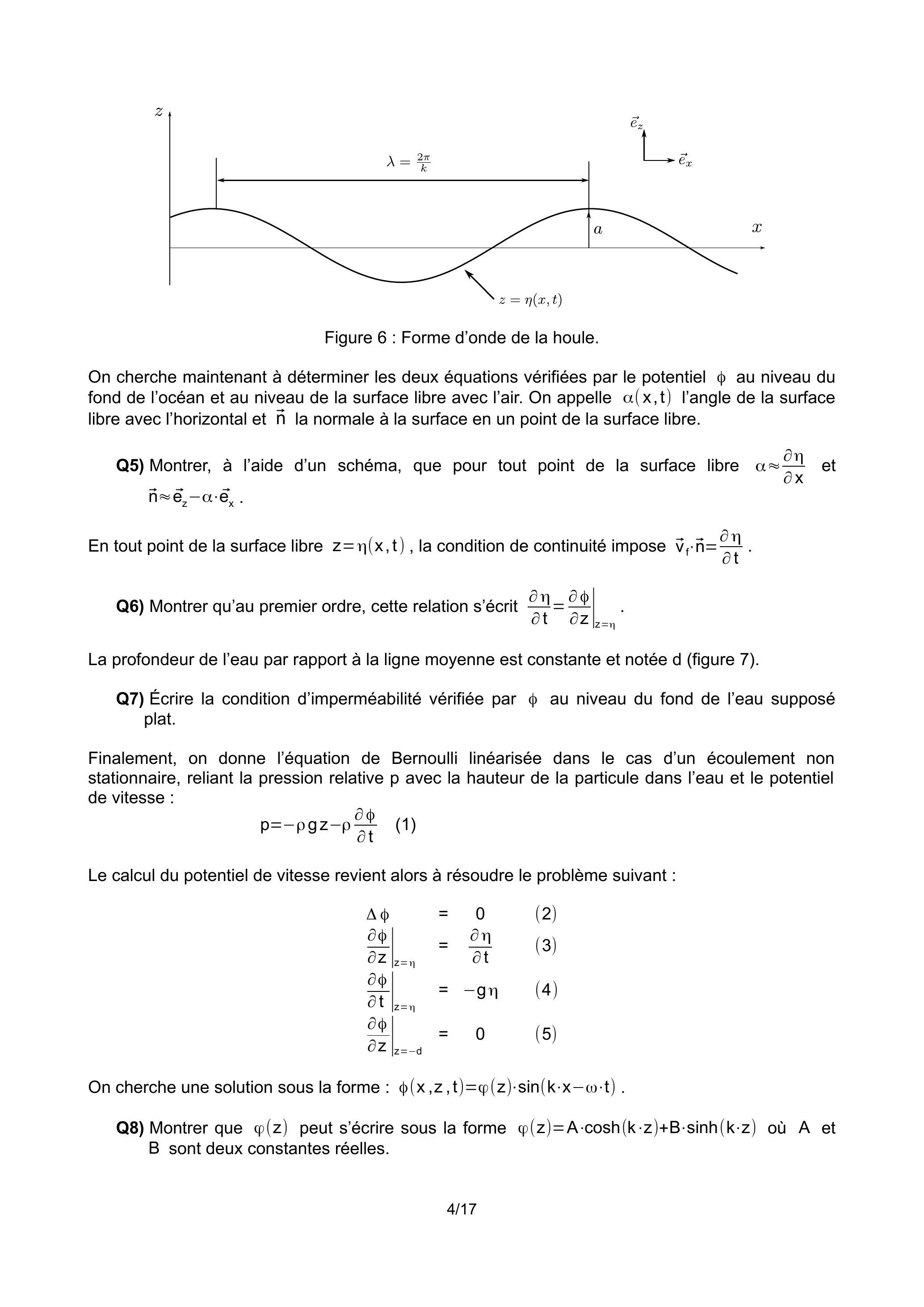 Q9) En combinant les relations (3), (4) et (5), montrer que la relation de dispersion de la houle s'écrit .