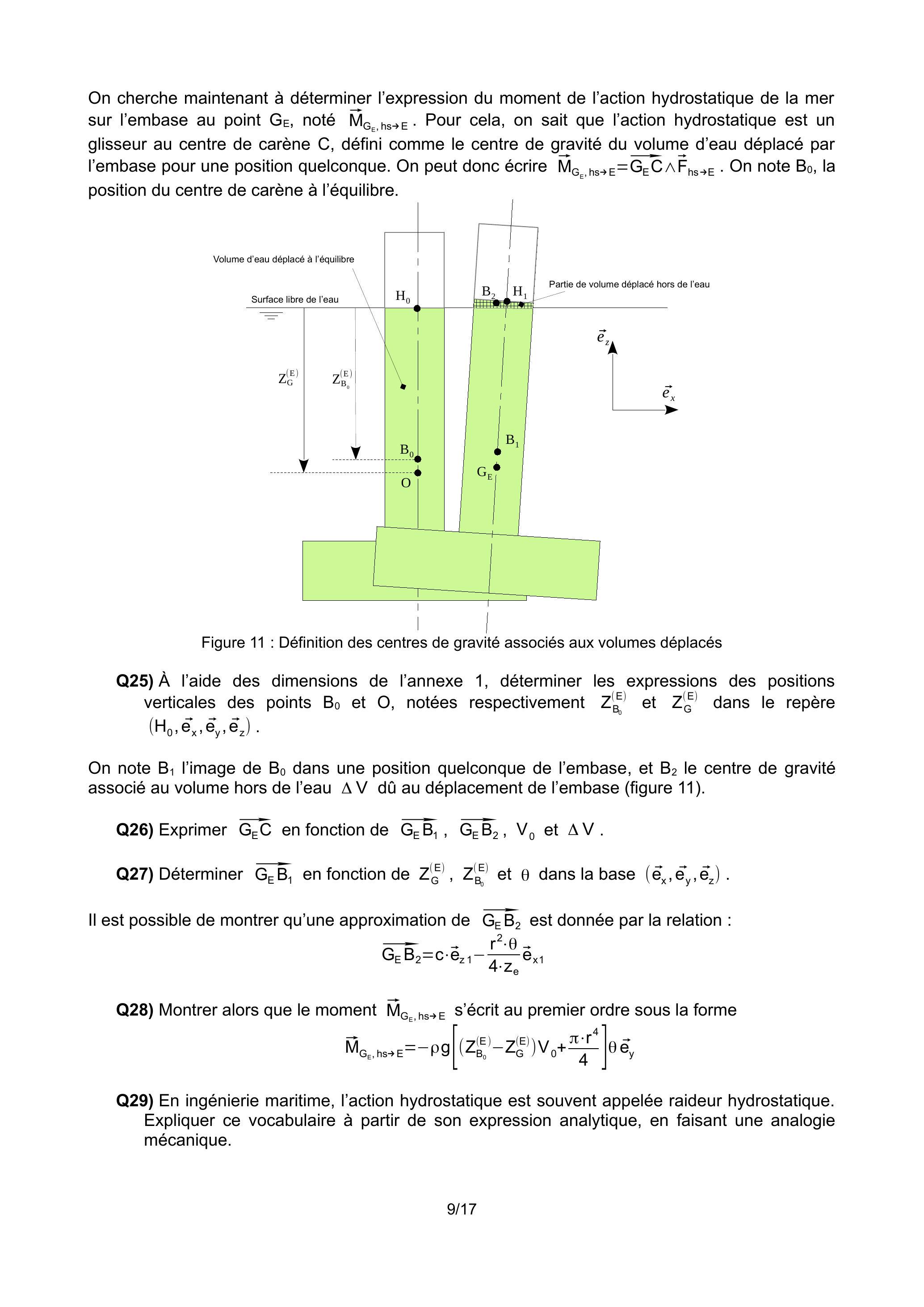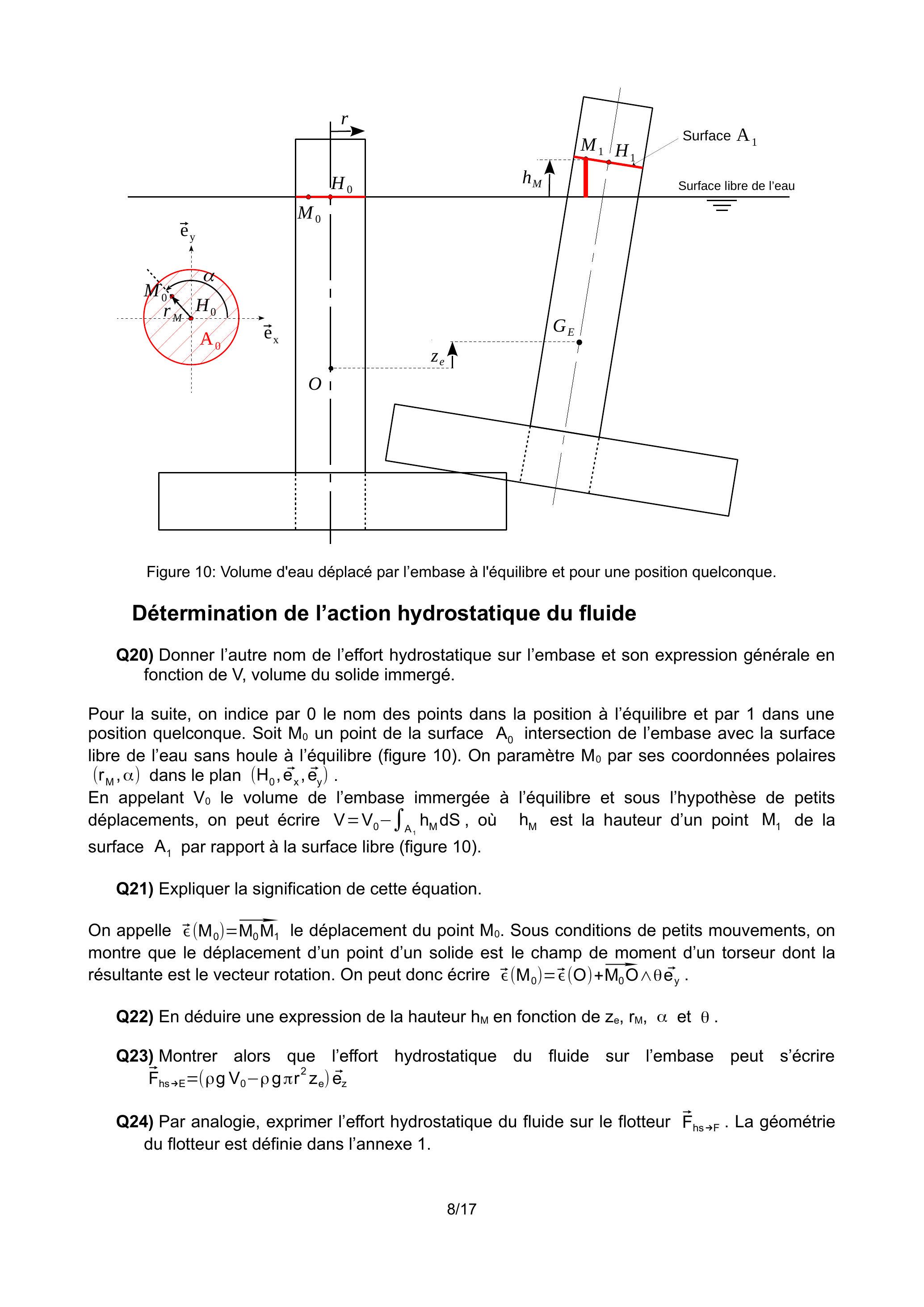 Q24) Par analogie, exprimer l'effort hydrostatique du fluide sur le flotteur . La géométrie du flotteur est définie dans l'annexe 1.