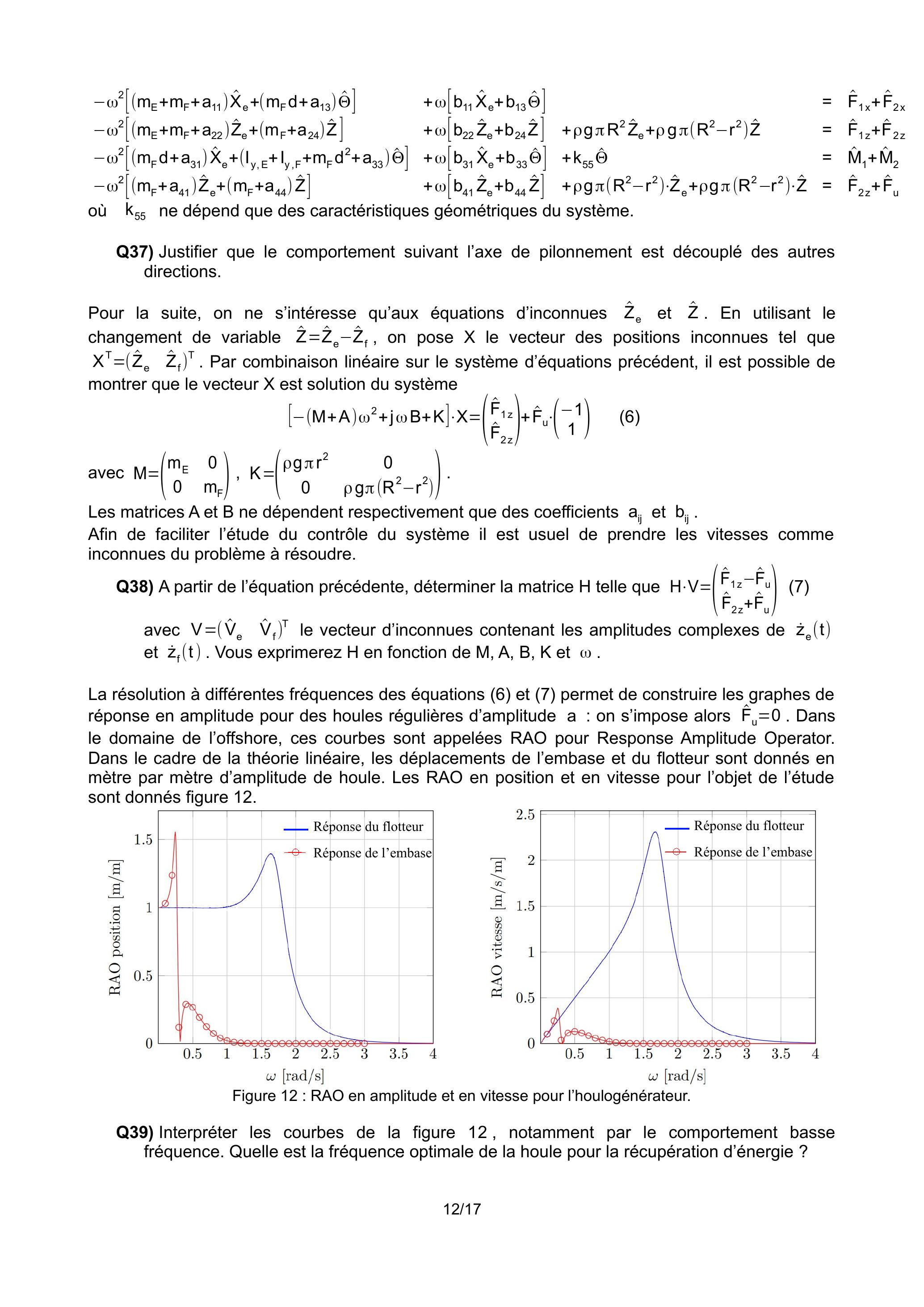 Q40) Démontrer que l'énergie fournie par le flotteur à la chaîne de motorisation peut s'écrire où est le complexe conjugué de .