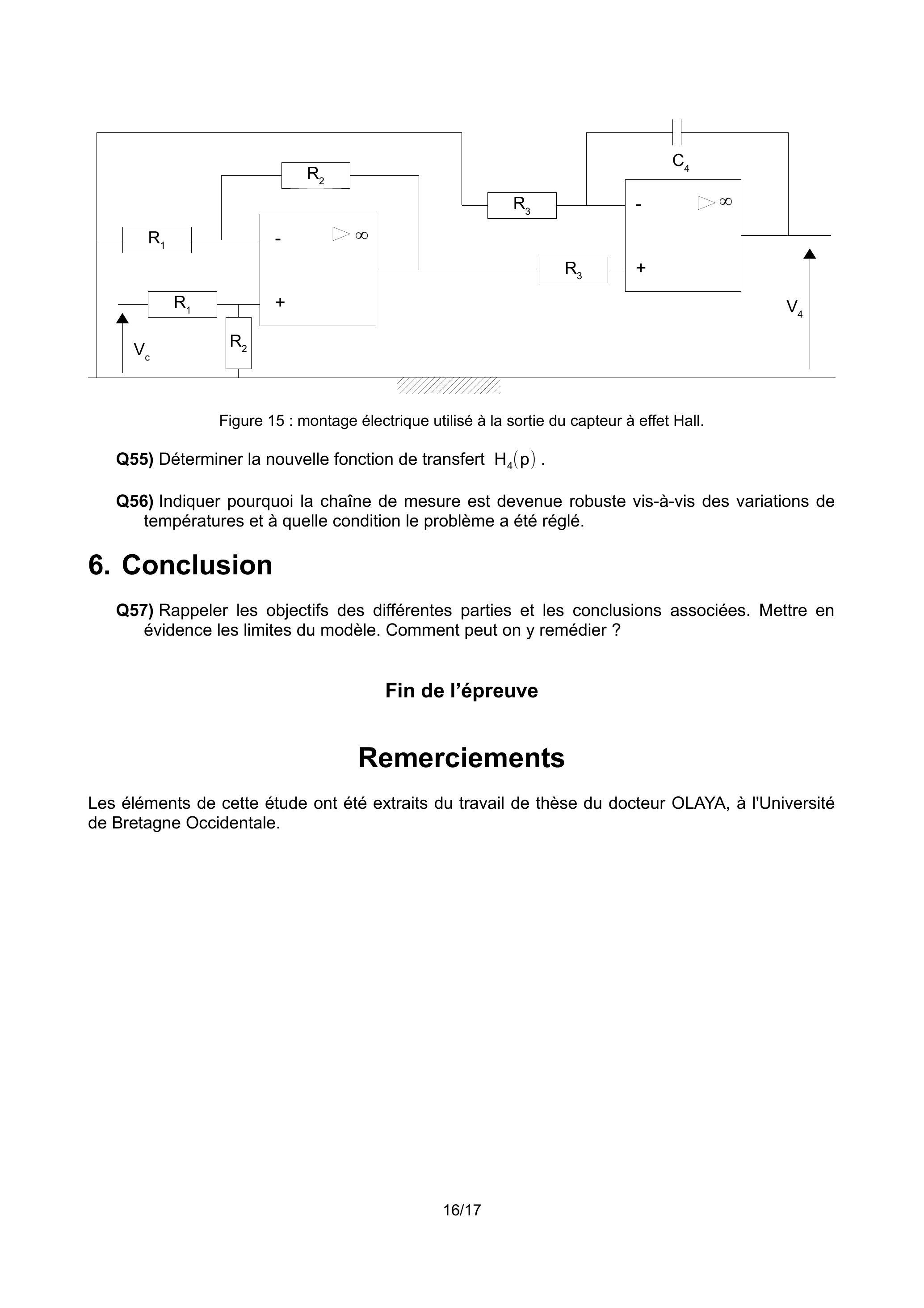 Q54) Une variation de température agit surtout sur le capteur à effet Hall, et modifie la valeur numérique de à un niveau pouvant aller jusqu'à une variation . Montrer qu'actuellement le système de mesure du courant est soumis à cette perturbation.