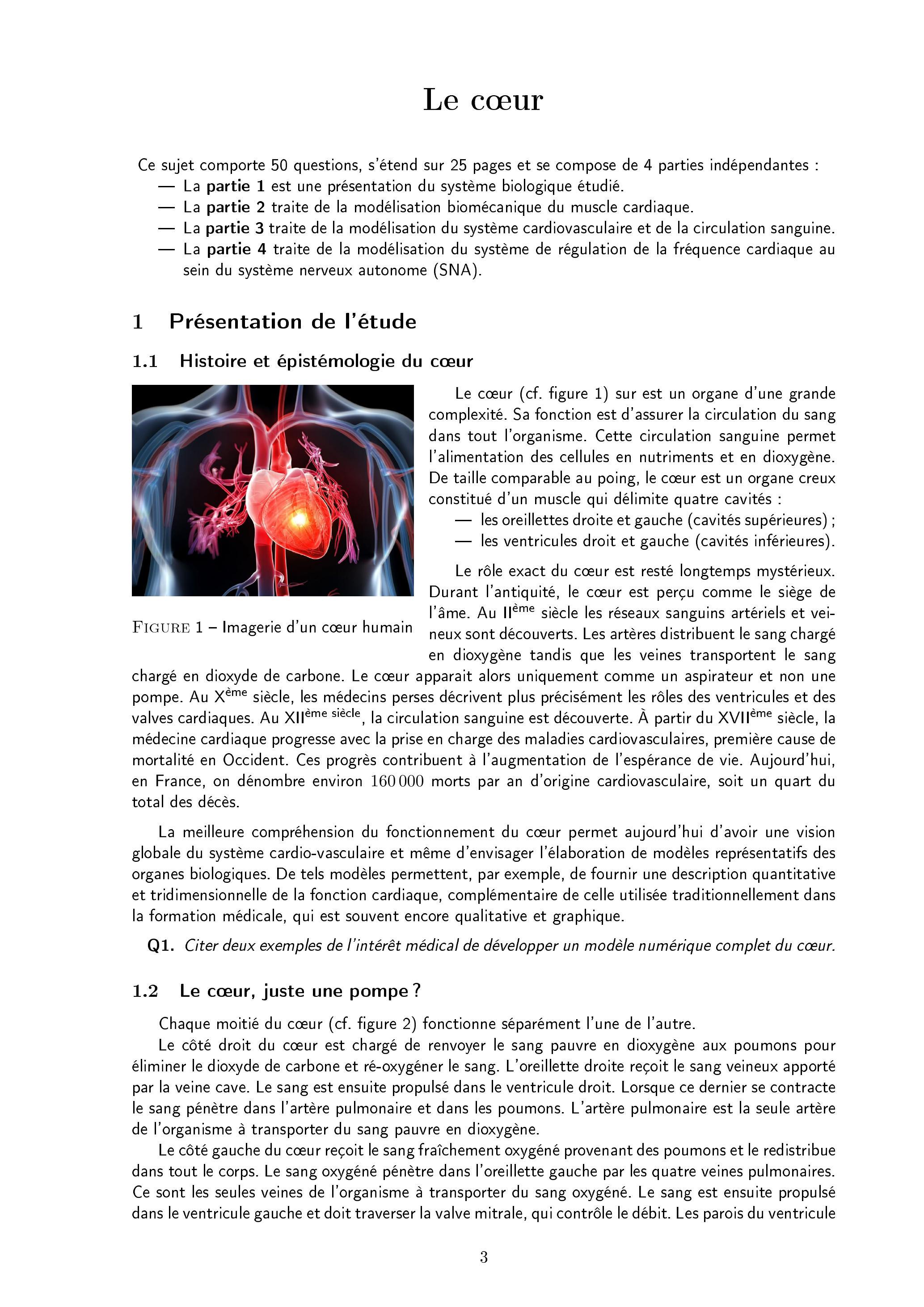 Q1. Citer deux exemples de l'intérêt médical de développer un modèle numérique complet du cœur.