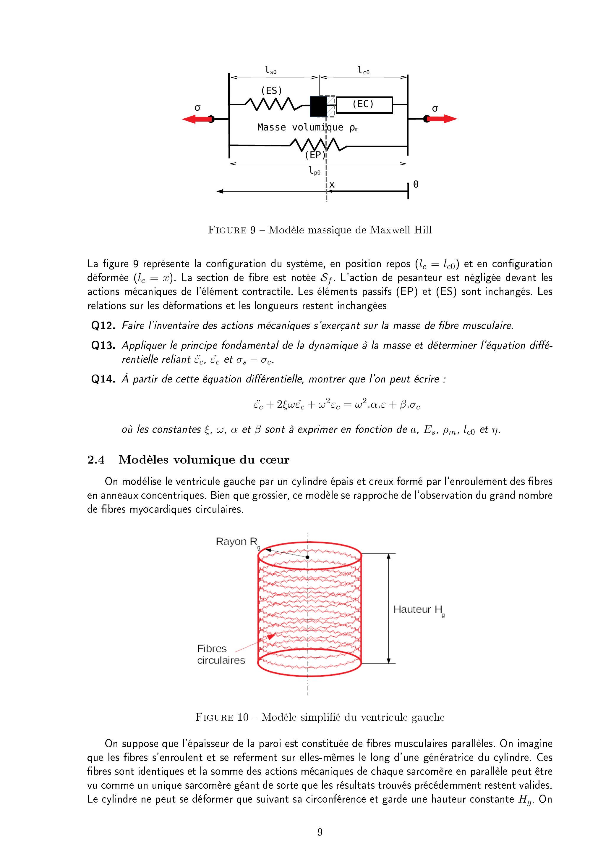 Les mesures de l'activité du myocarde montrent que la force par l'élément contractile (EC) développée n'est pas proportionnelle à la déformation de la fibre. Le modèle suivant est proposé :