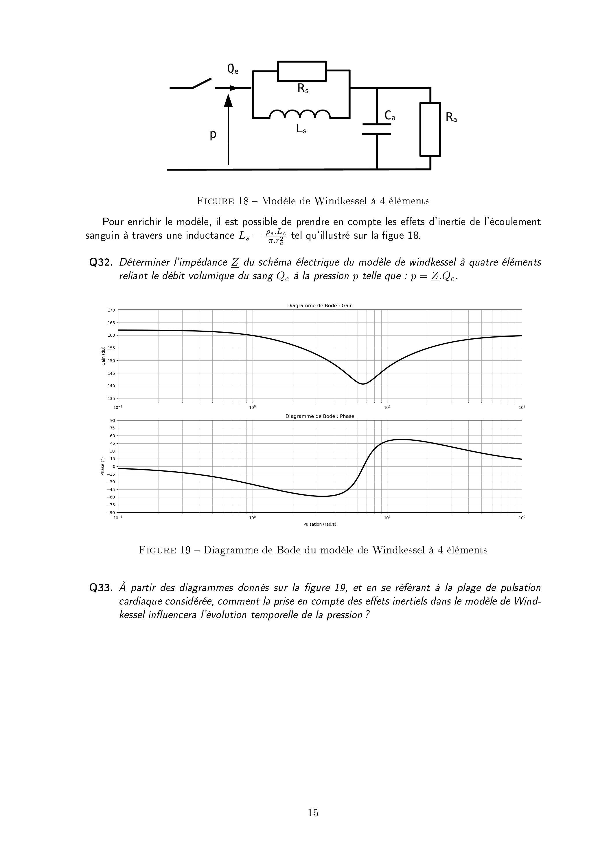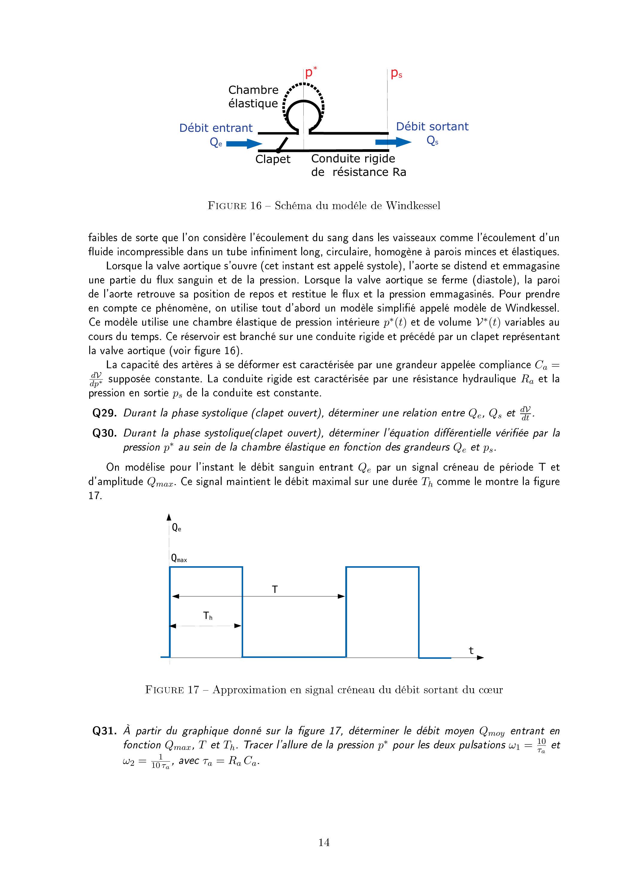 Q48. En première approximation grossière, on considère ici que l'évolution de la pression cardiaque suit un signal périodique sinusoïdal défini par :