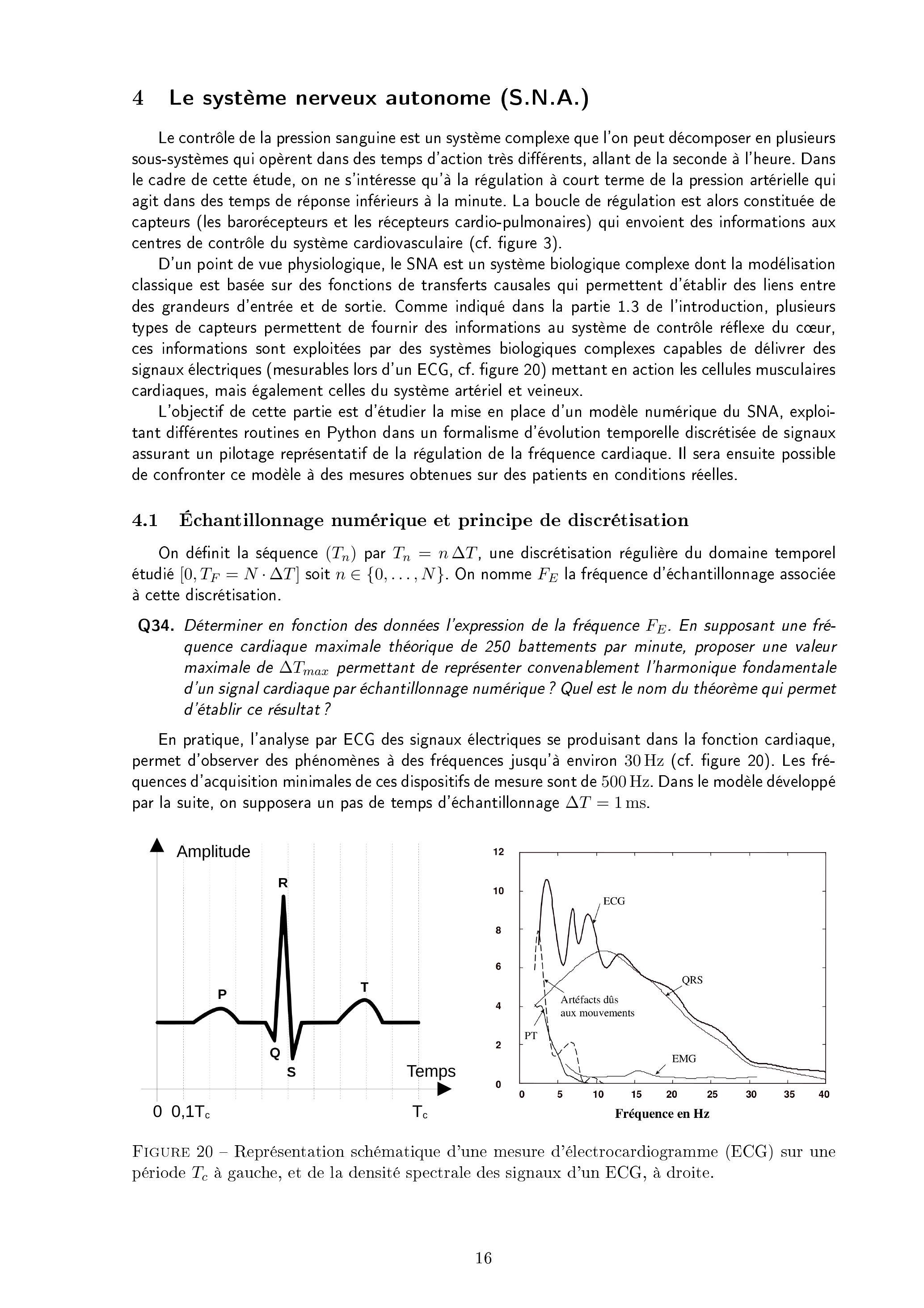 La partie 4 traite de la modélisation du système de régulation de la fréquence cardiaque au sein du système nerveux autonome (SNA).