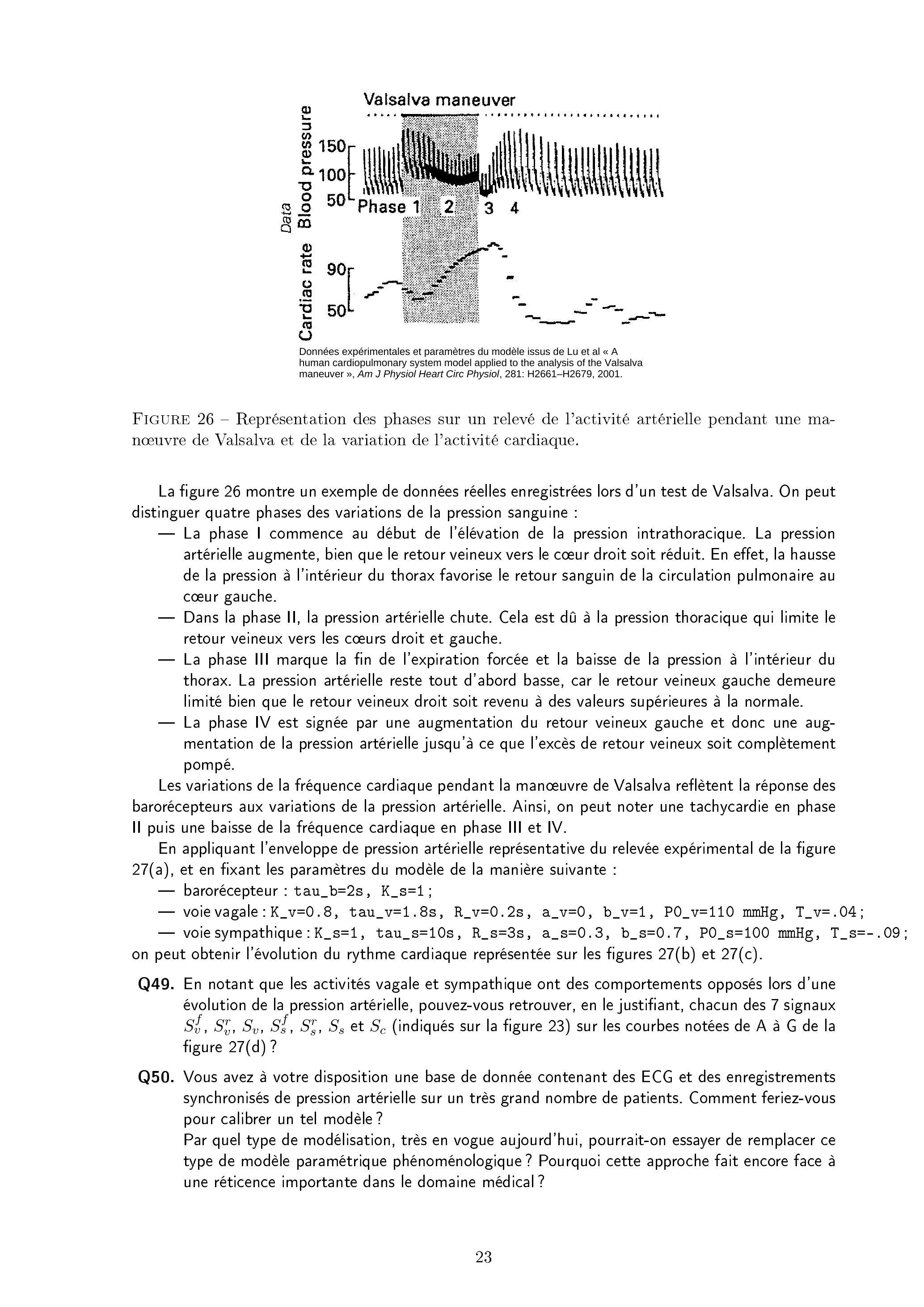 La figure 26 montre un exemple de données réelles enregistrées lors d'un test de Valsalva. On peut distinguer quatre phases des variations de la pression sanguine: