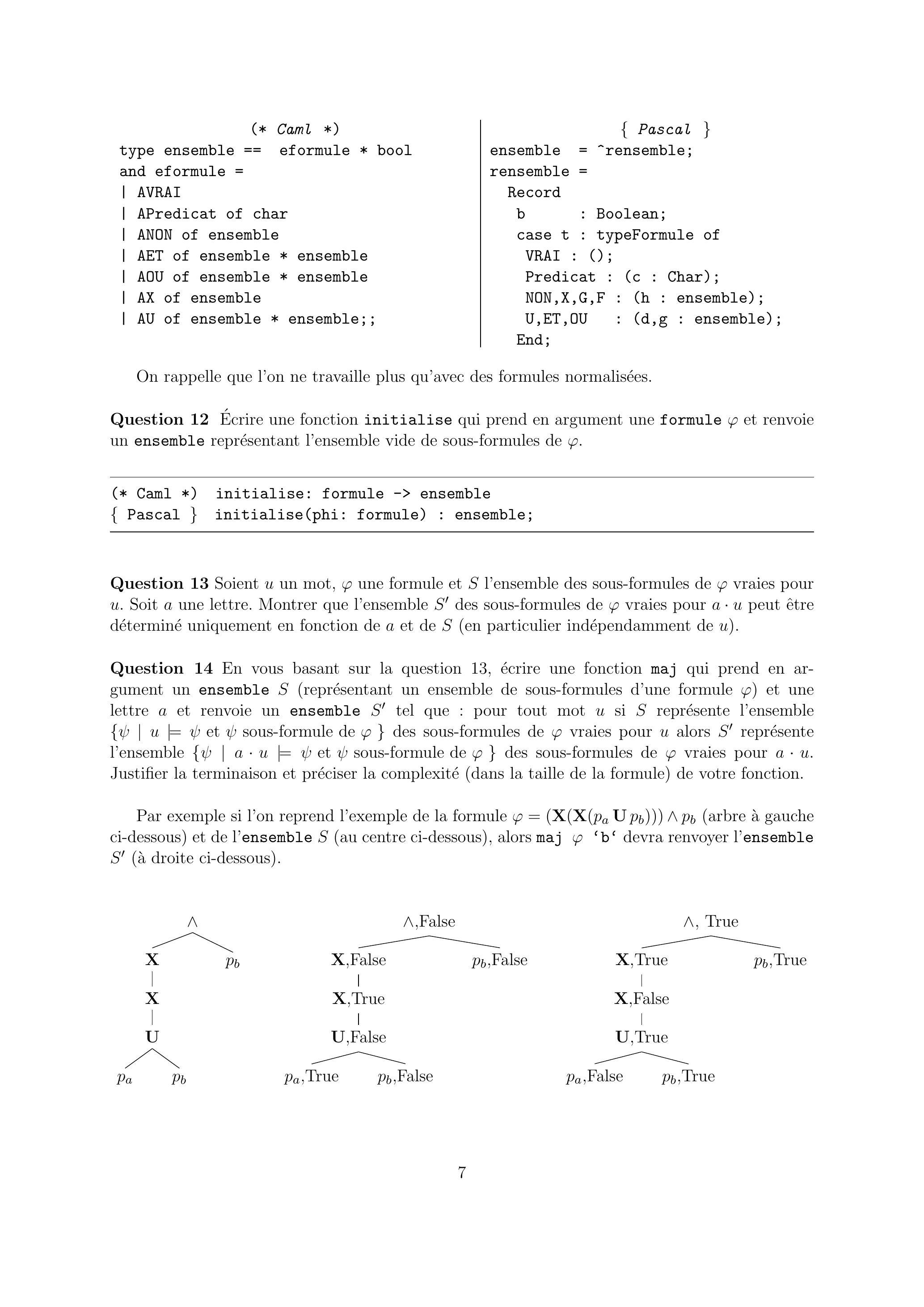 Question 13 Soient un mot, une formule et l'ensemble des sous-formules de vraies pour . Soit une lettre. Montrer que l'ensemble des sous-formules de vraies pour peut être déterminé uniquement en fonction de et de (en particulier indépendamment de ).