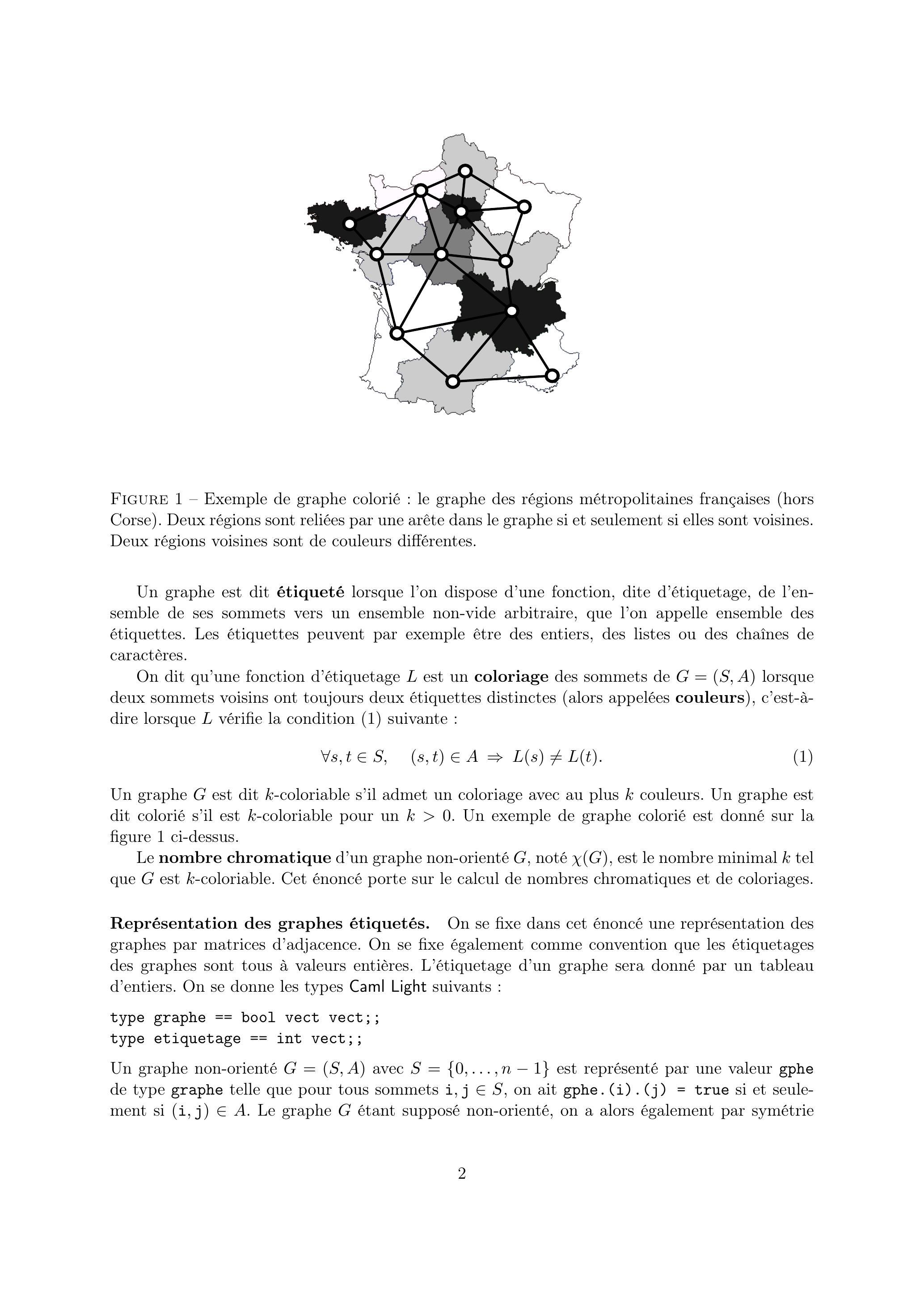 Un graphe est dit -coloriable s'il admet un coloriage avec au plus couleurs. Un graphe est dit colorié s'il est -coloriable pour un . Un exemple de graphe colorié est donné sur la figure 1 ci-dessus.