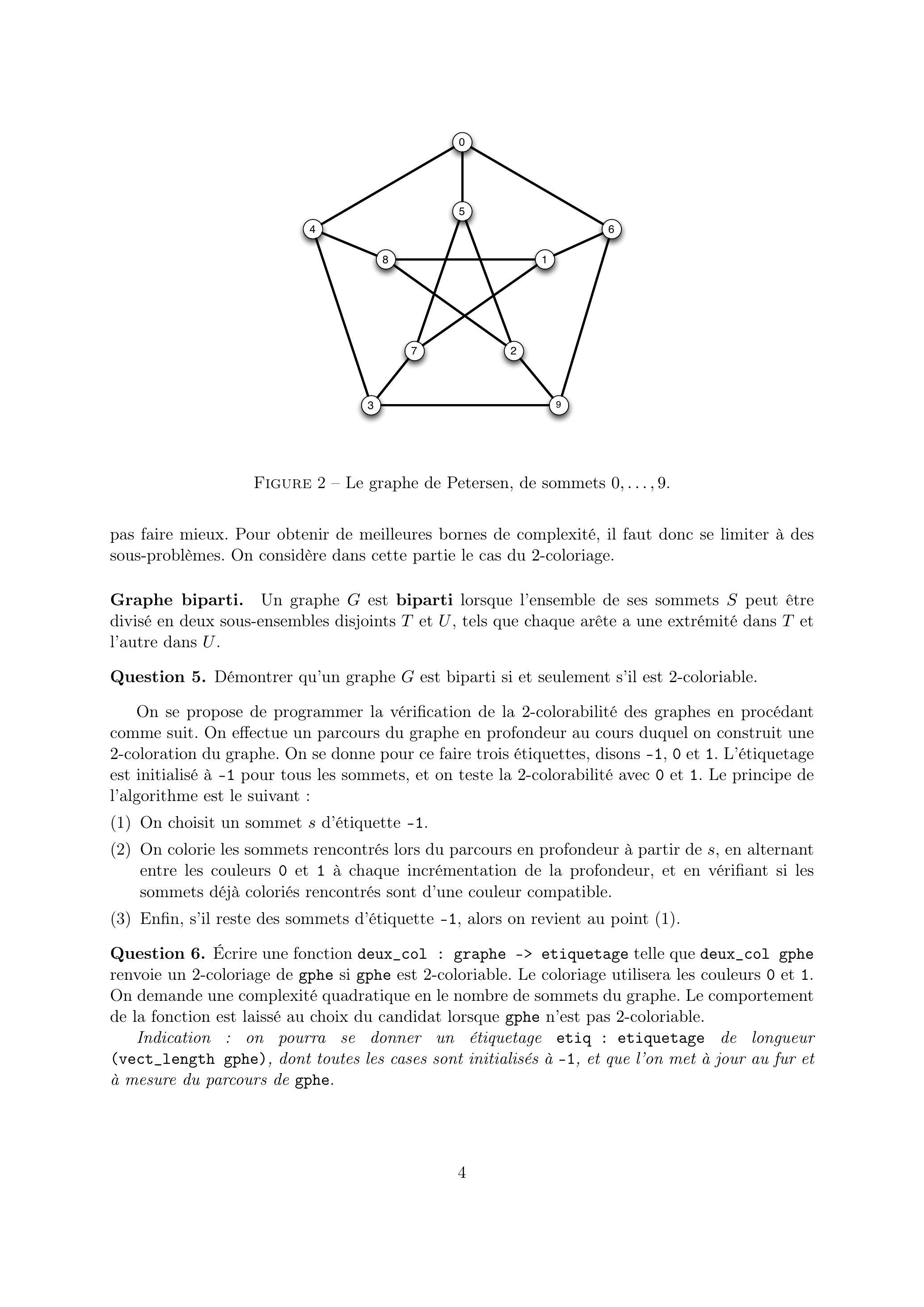 Question 2. Donner le nombre chromatique, ainsi qu'un exemple de coloriage correspondant, pour le graphe de Petersen représenté figure 2 page 4.