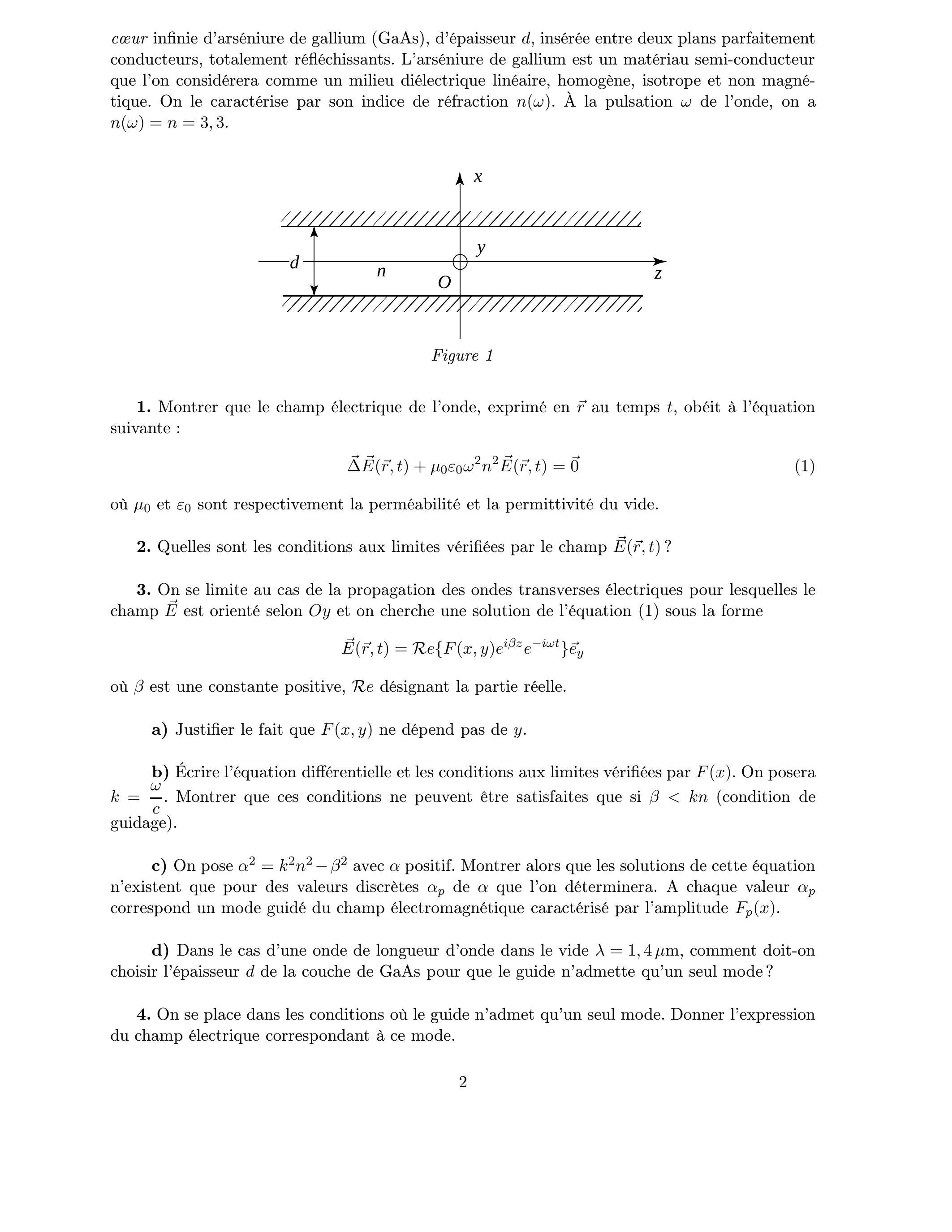 d) Dans le cas d'une onde de longueur d'onde dans le vide , comment doit-on choisir l'épaisseur de la couche de GaAs pour que le guide n'admette qu'un seul mode?