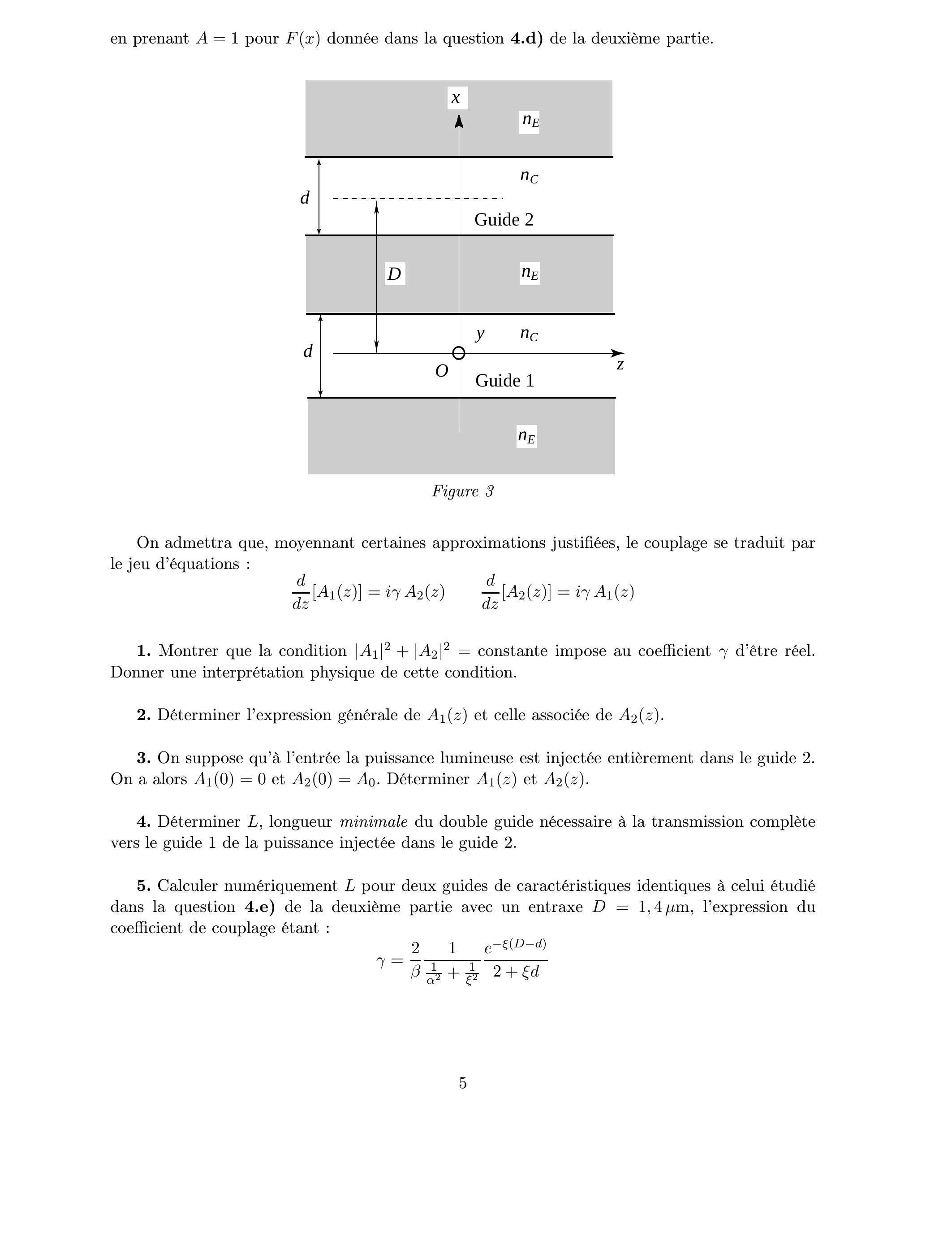 2. On suppose qu'à l'entrée la puissance lumineuse est injectée entièrement dans le guide 2. On a alors et . On pose : .