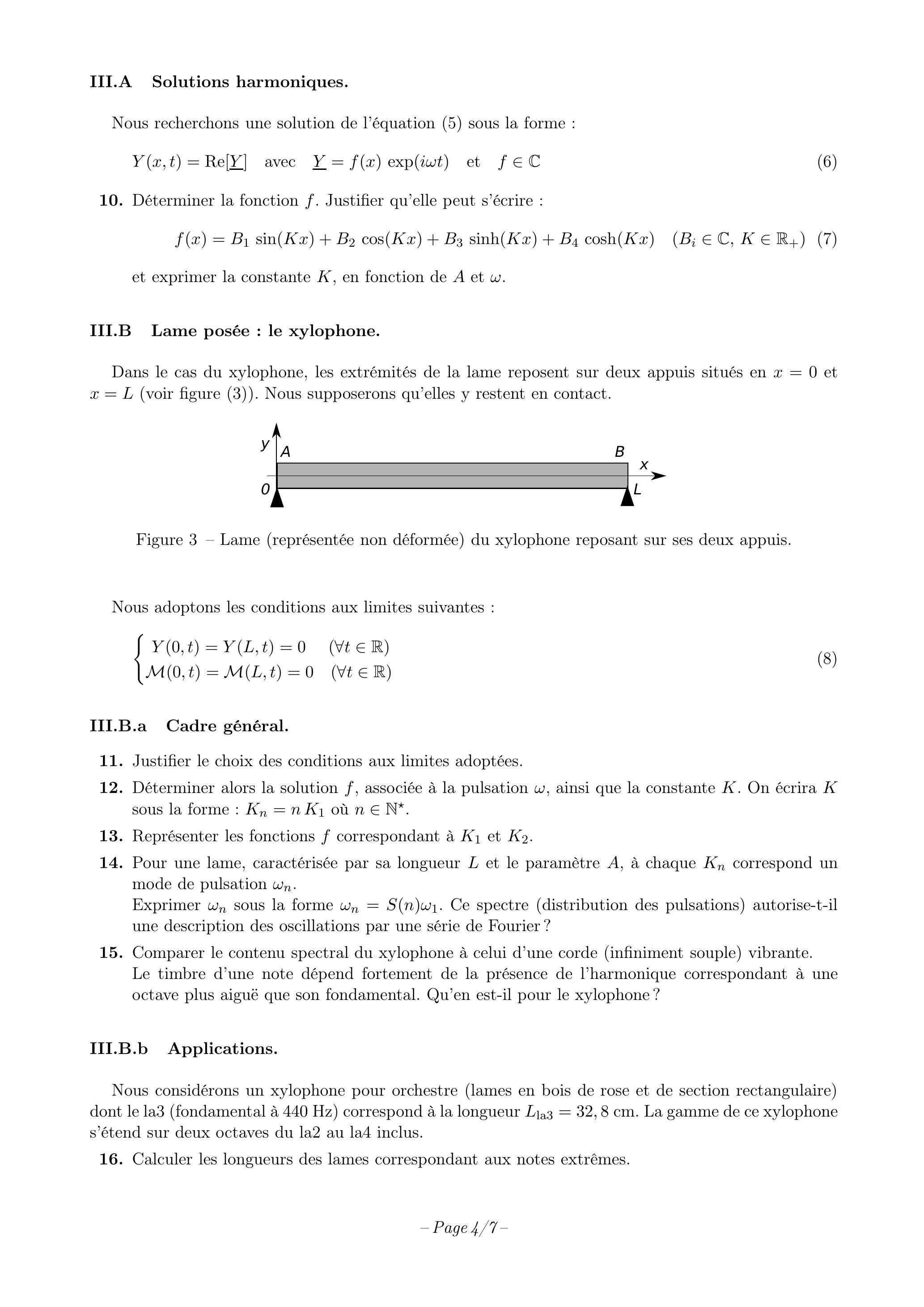 Dans le cas du xylophone, les extrémités de la lame reposent sur deux appuis situés en et (voir figure (3)). Nous supposerons qu'elles y restent en contact.