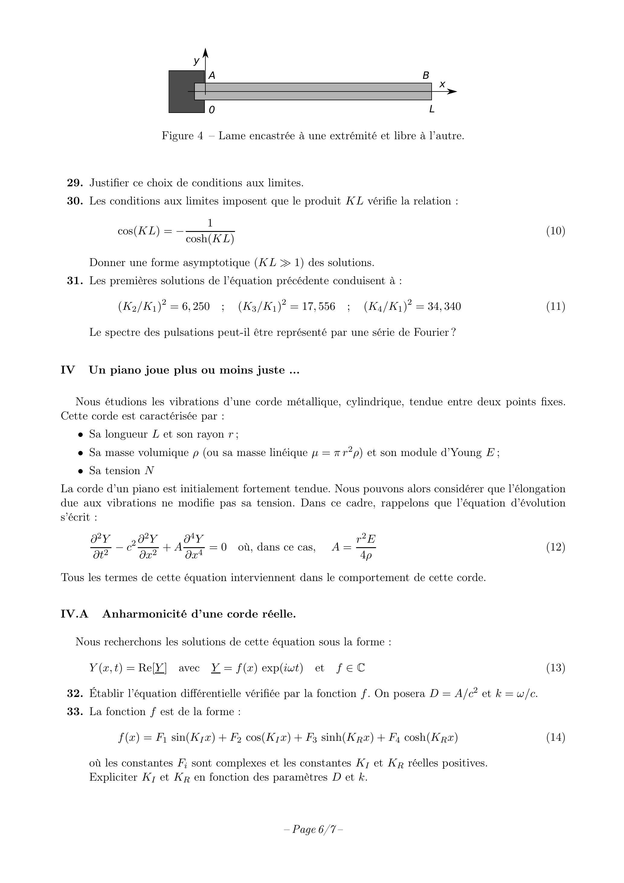 La corde d'un piano est initialement fortement tendue. Nous pouvons alors considérer que l'élongation due aux vibrations ne modifie pas sa tension. Dans ce cadre, rappelons que l'équation d'évolution s'écrit :
