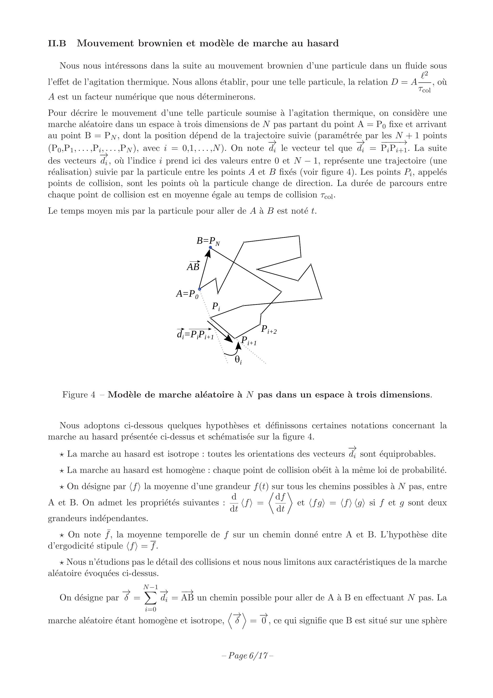 11. Indiquer la relation entre le temps moyen pour aller de A à B , le temps de collision et le nombre de pas de la marche aléatoire . En déduire alors l'expression de en fonction de et .