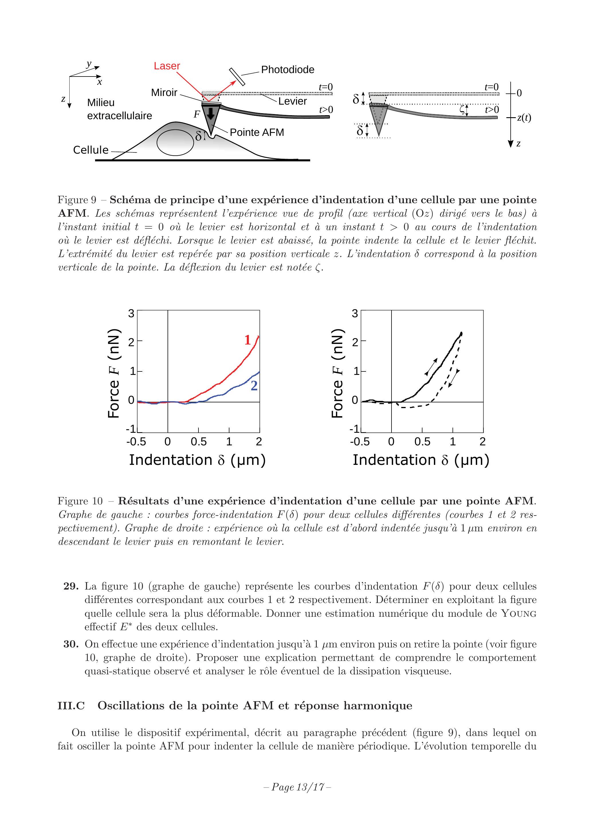28. Expliquer, synthétiquement, comment on peut déduire la force appliquée sur la cellule à partir de la mesure de la position de l'extrémité du levier et de la position de la pointe.