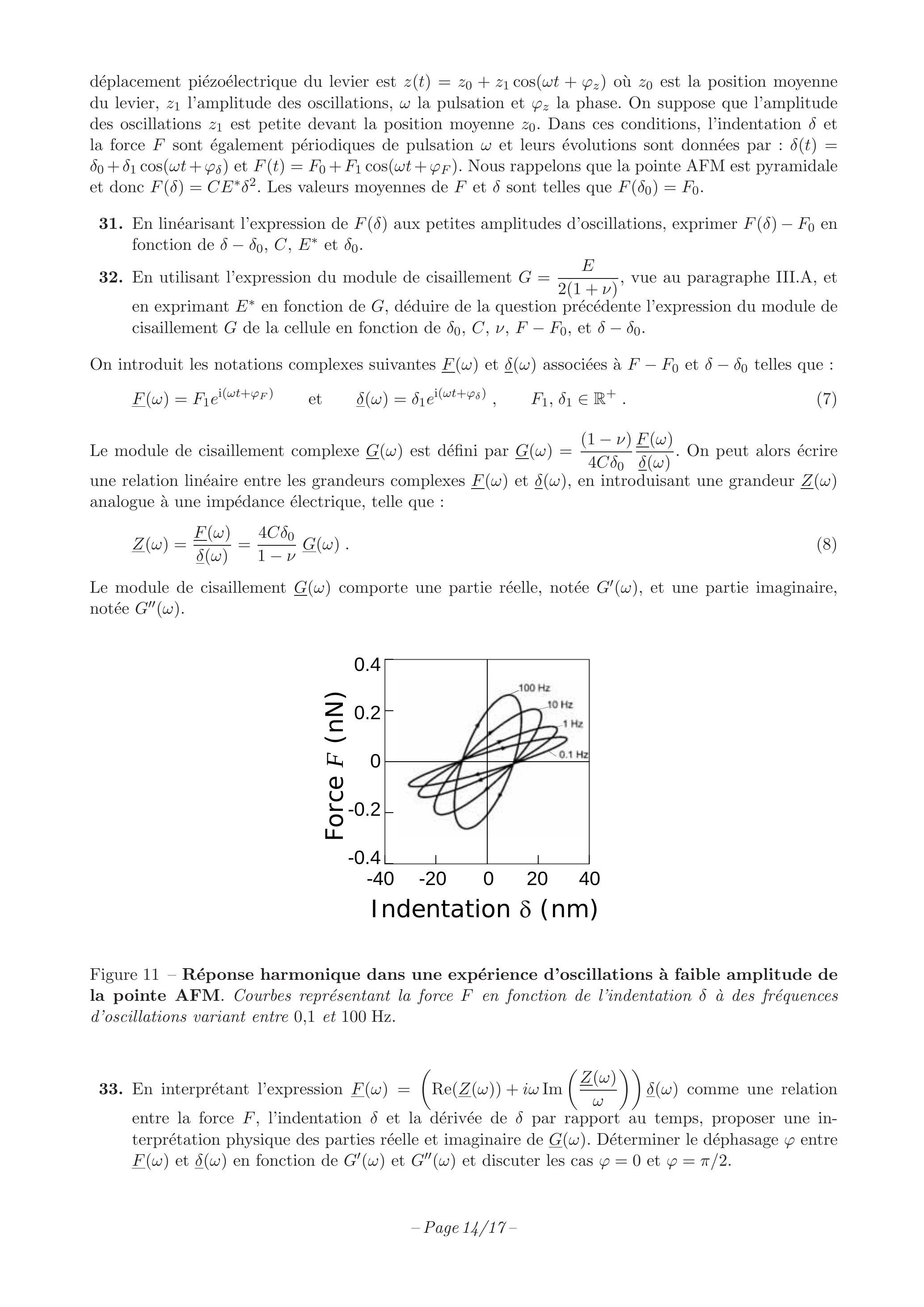 En interprétant l'expression comme une relation entre la force , l'indentation et la dérivée de par rapport au temps, proposer une interprétation physique des parties réelle et imaginaire de . Déterminer le déphasage entre et en fonction de et et discuter les cas et .