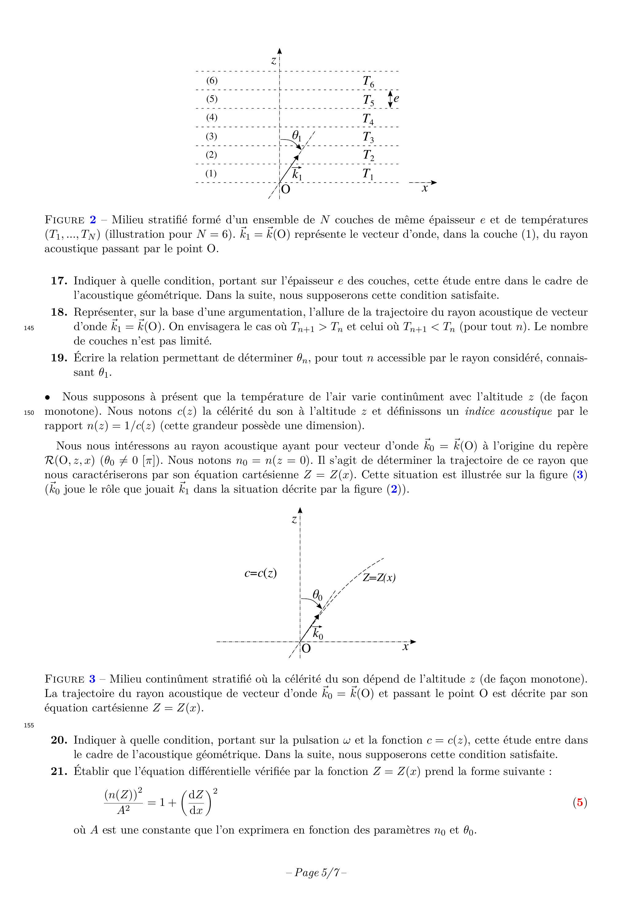 Représenter, sur la base d'une argumentation, l'allure de la trajectoire du rayon acoustique de vecteur d'onde . On envisagera le cas où et celui où (pour tout ). Le nombre de couches n'est pas limité.