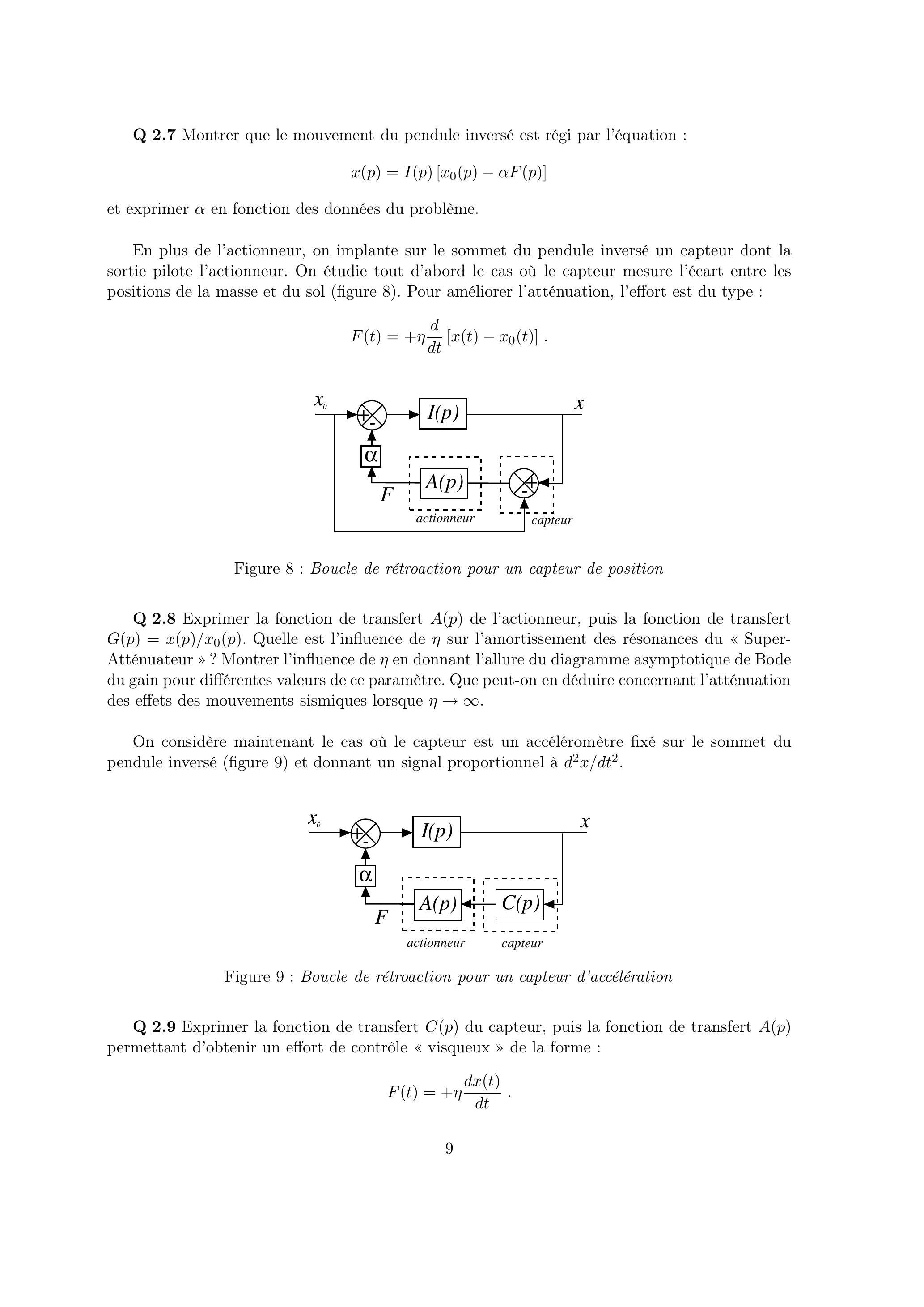 On considère maintenant le cas où le capteur est un accéléromètre fixé sur le sommet du pendule inversé (figure 9) et donnant un signal proportionnel à .