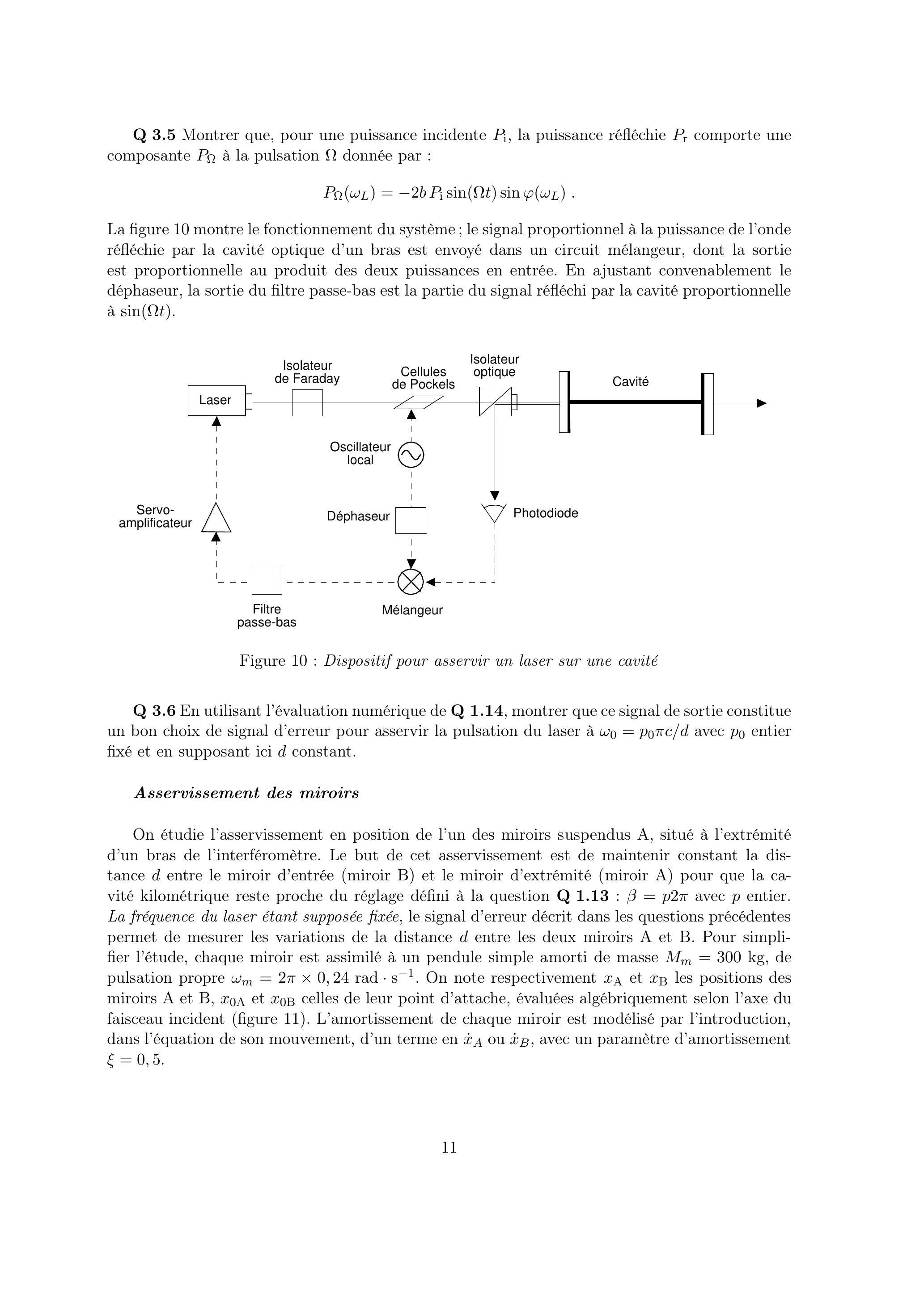 Q 3.3 On utilise en pratique une méthode un peu différente. On module la phase de l'onde incidente, ce qui donne à l'entrée de la cavité ( ) : avec .