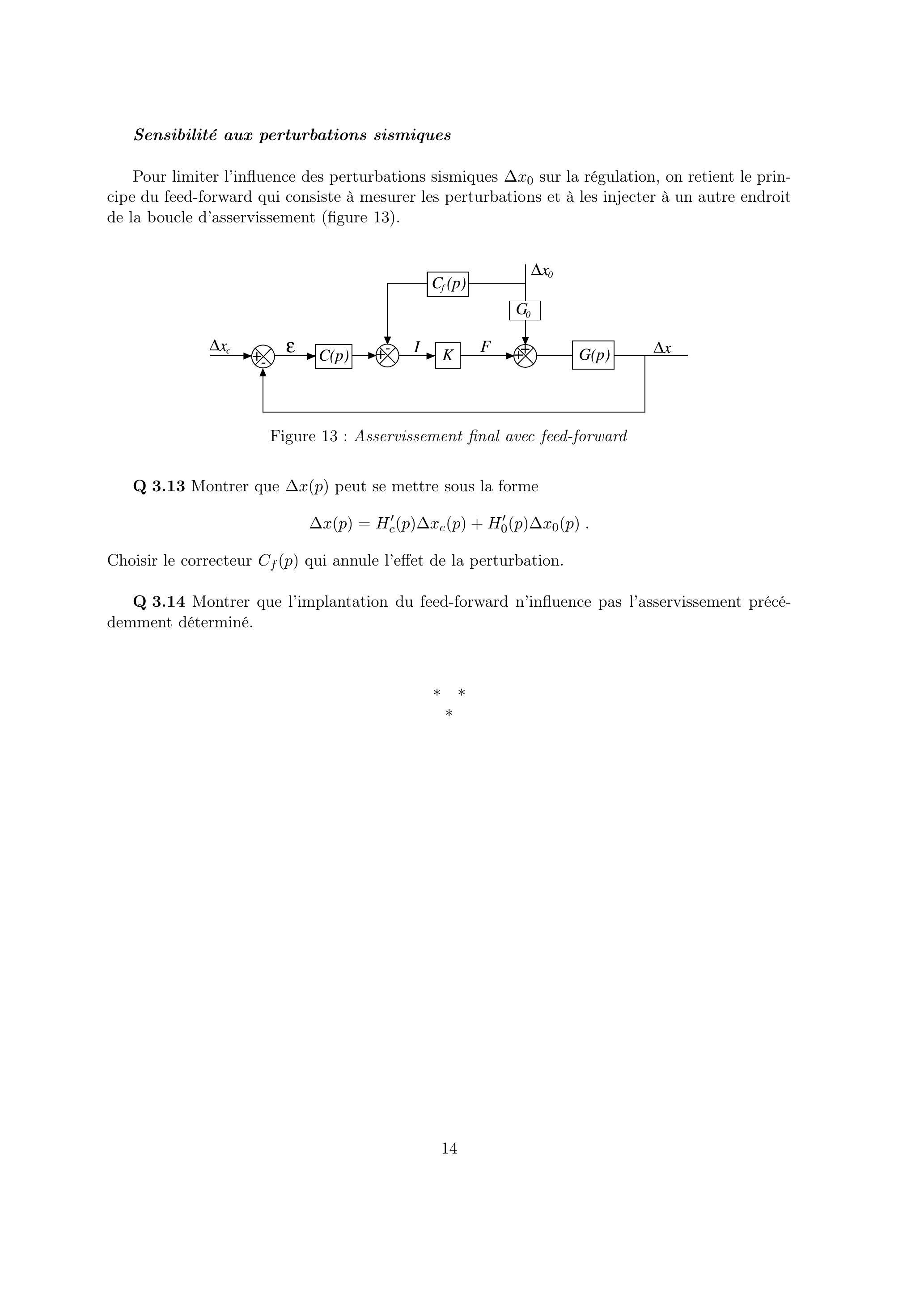 Pour limiter l'influence des perturbations sismiques sur la régulation, on retient le principe du feed-forward qui consiste à mesurer les perturbations et à les injecter à un autre endroit de la boucle d'asservissement (figure 13).