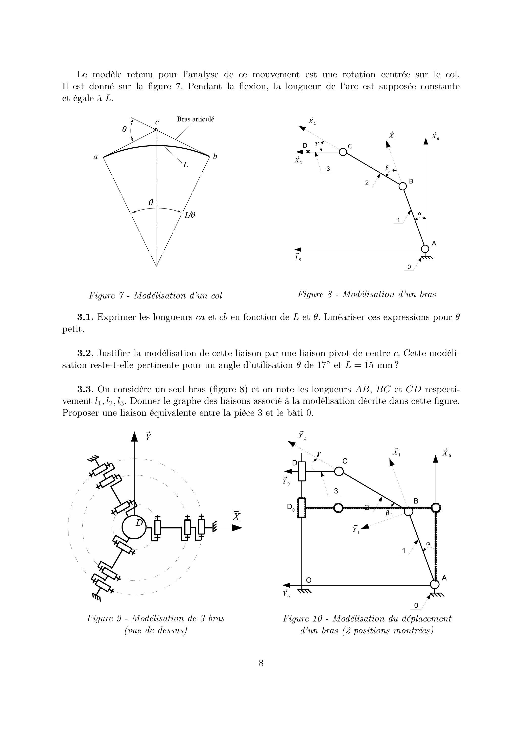 3.3. On considère un seul bras (figure 8) et on note les longueurs et respectivement . Donner le graphe des liaisons associé à la modélisation décrite dans cette figure. Proposer une liaison équivalente entre la pièce 3 et le bâti 0 .