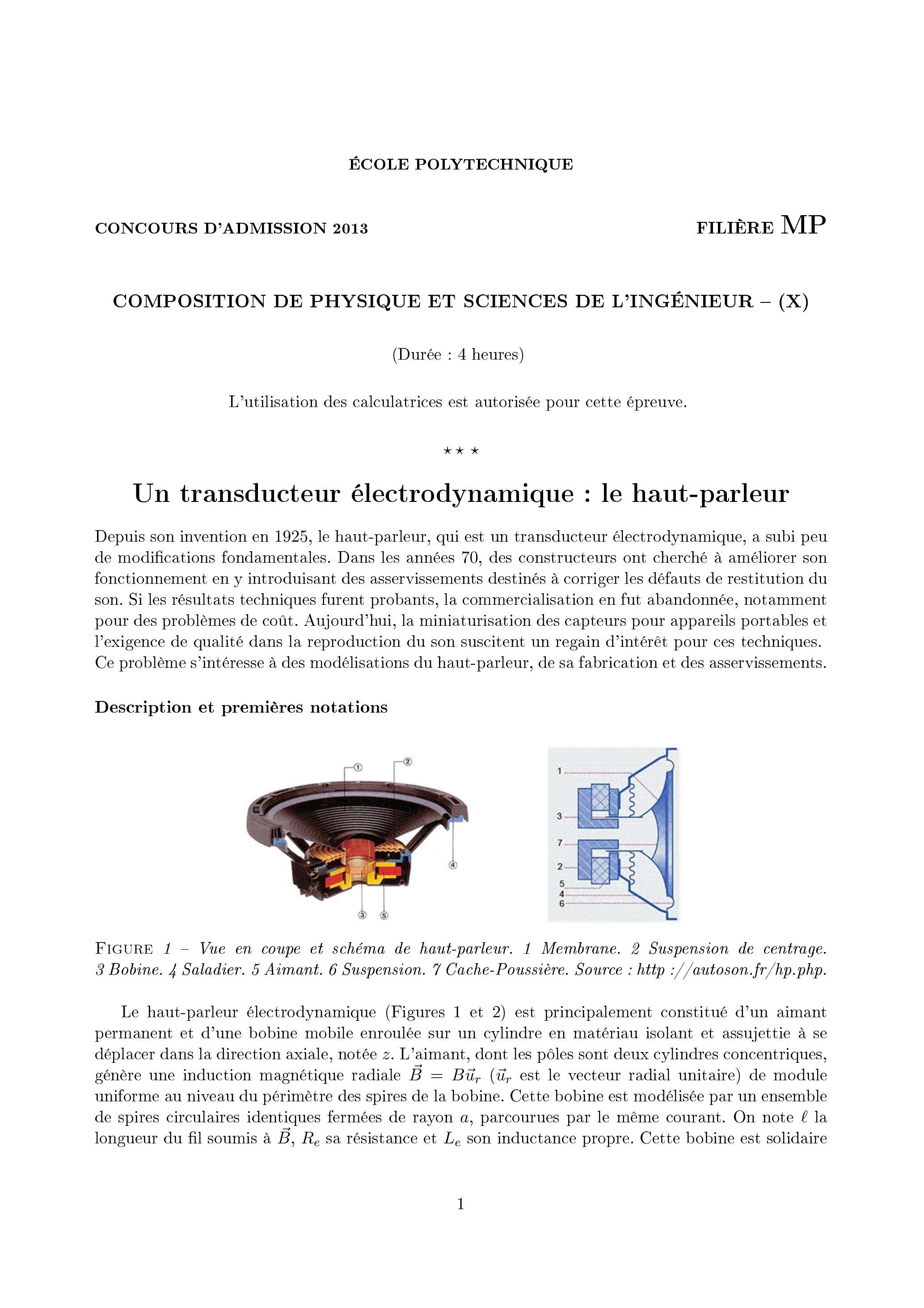 X ENS Physique SI MP 2013 - Version Web LaTeX | WikiPrépa | WikiPrépa