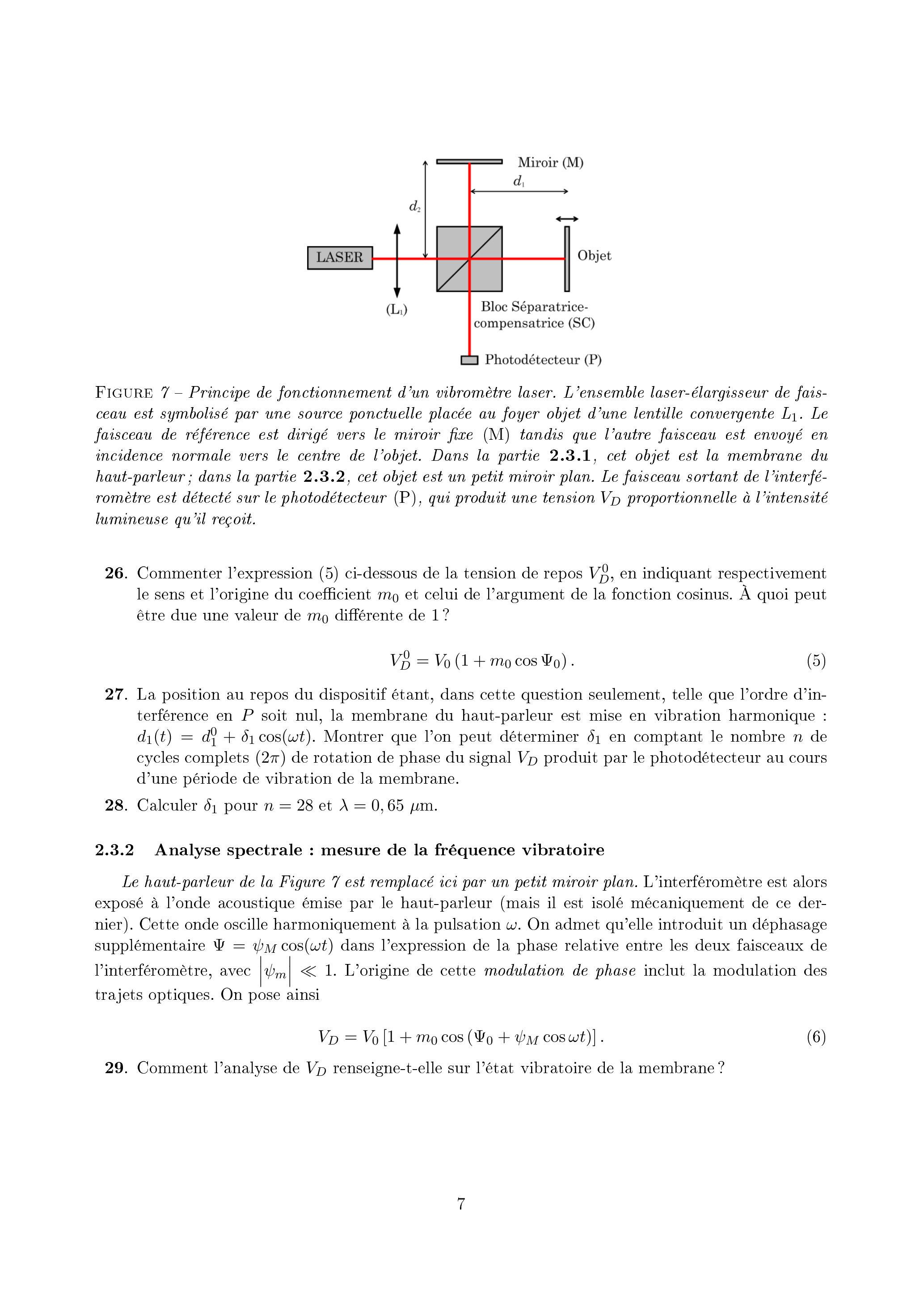 La position au repos du dispositif étant, dans cette question seulement, telle que l'ordre d'interférence en soit nul, la membrane du haut-parleur est mise en vibration harmonique : . Montrer que l'on peut déterminer en comptant le nombre de cycles complets ( ) de rotation de phase du signal produit par le photodétecteur au cours d'une période de vibration de la membrane.