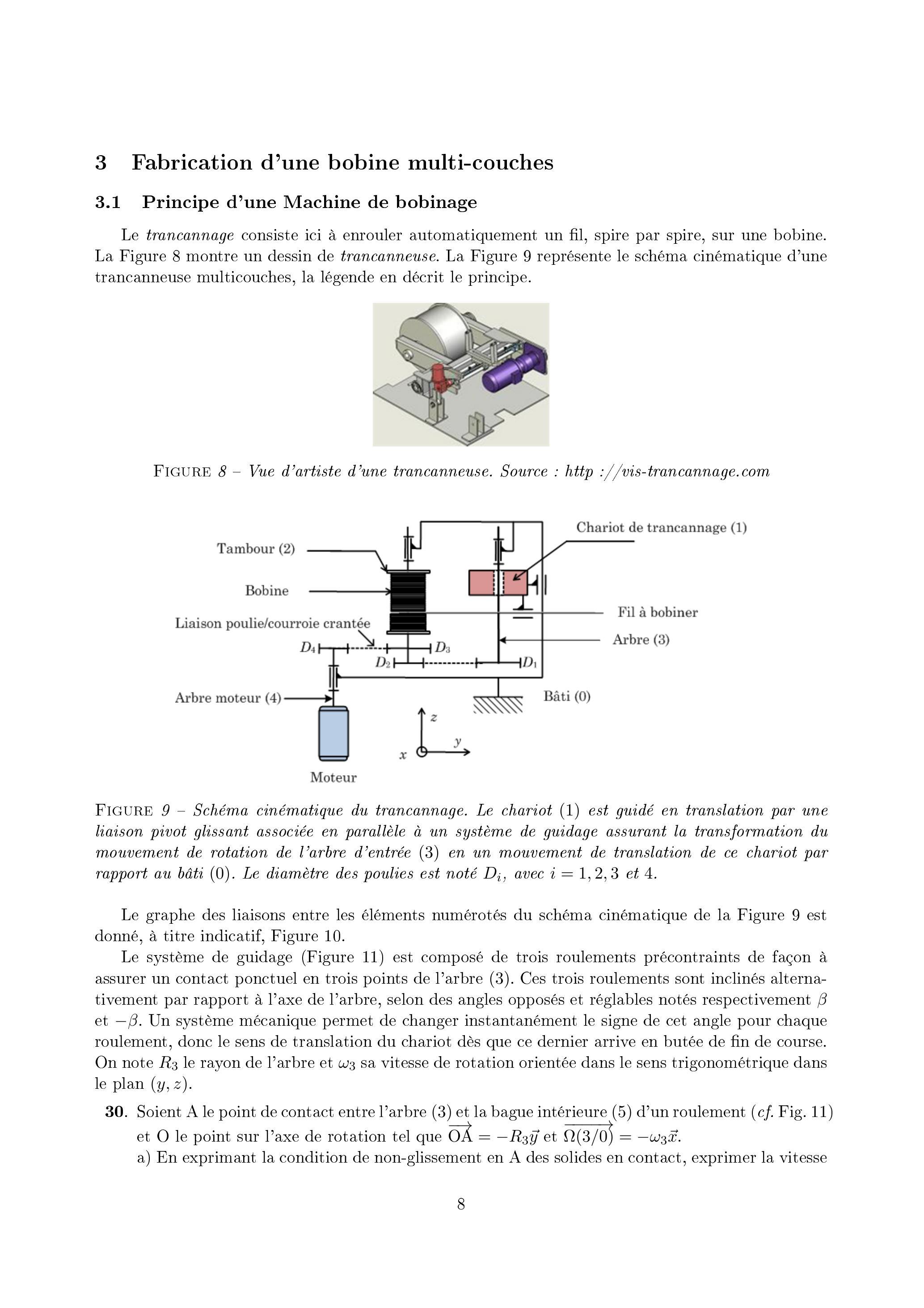 Le trancannage consiste ici à enrouler automatiquement un fil, spire par spire, sur une bobine. La Figure 8 montre un dessin de trancanneuse. La Figure 9 représente le schéma cinématique d'une trancanneuse multicouches, la légende en décrit le principe.