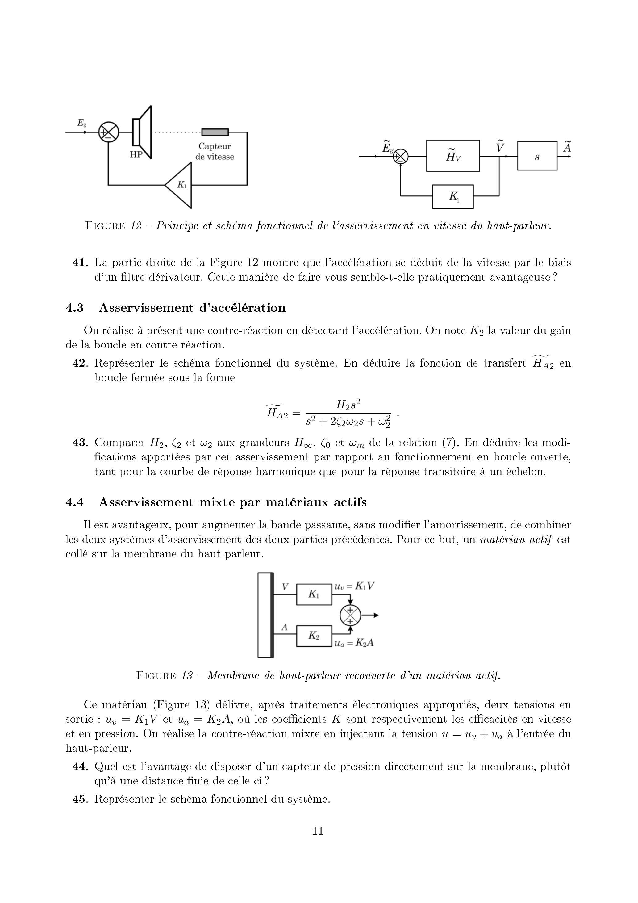 Depuis son invention en 1925, le haut-parleur, qui est un transducteur électrodynamique, a subi peu de modifications fondamentales. Dans les années 70 , des constructeurs ont cherché à améliorer son fonctionnement en y introduisant des asservissements destinés à corriger les défauts de restitution du son. Si les résultats techniques furent probants, la commercialisation en fut abandonnée, notamment pour des problèmes de coût. Aujourd'hui, la miniaturisation des capteurs pour appareils portables et l'exigence de qualité dans la reproduction du son suscitent un regain d'intérêt pour ces techniques. Ce problème s'intéresse à des modélisations du haut-parleur, de sa fabrication et des asservissements.