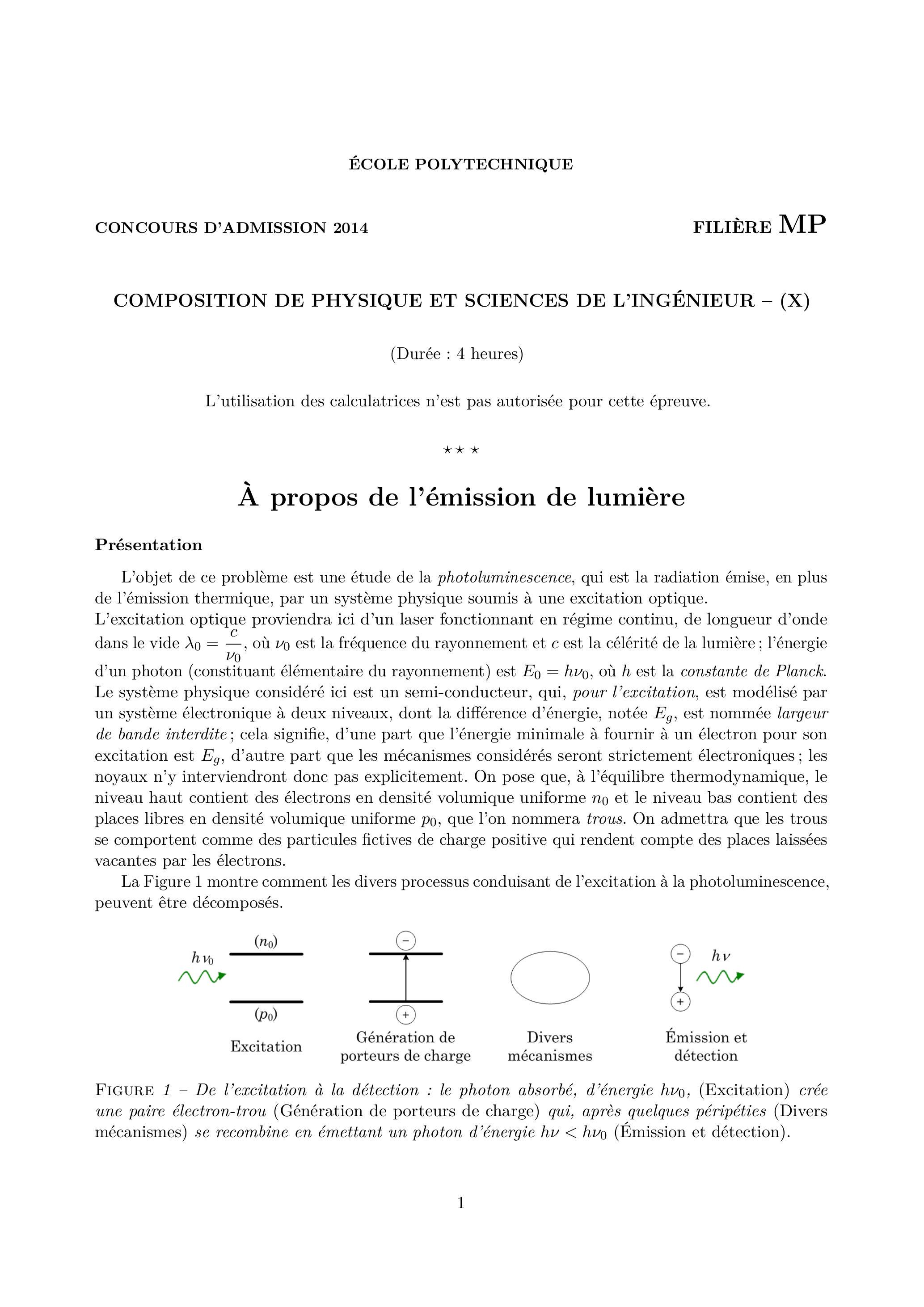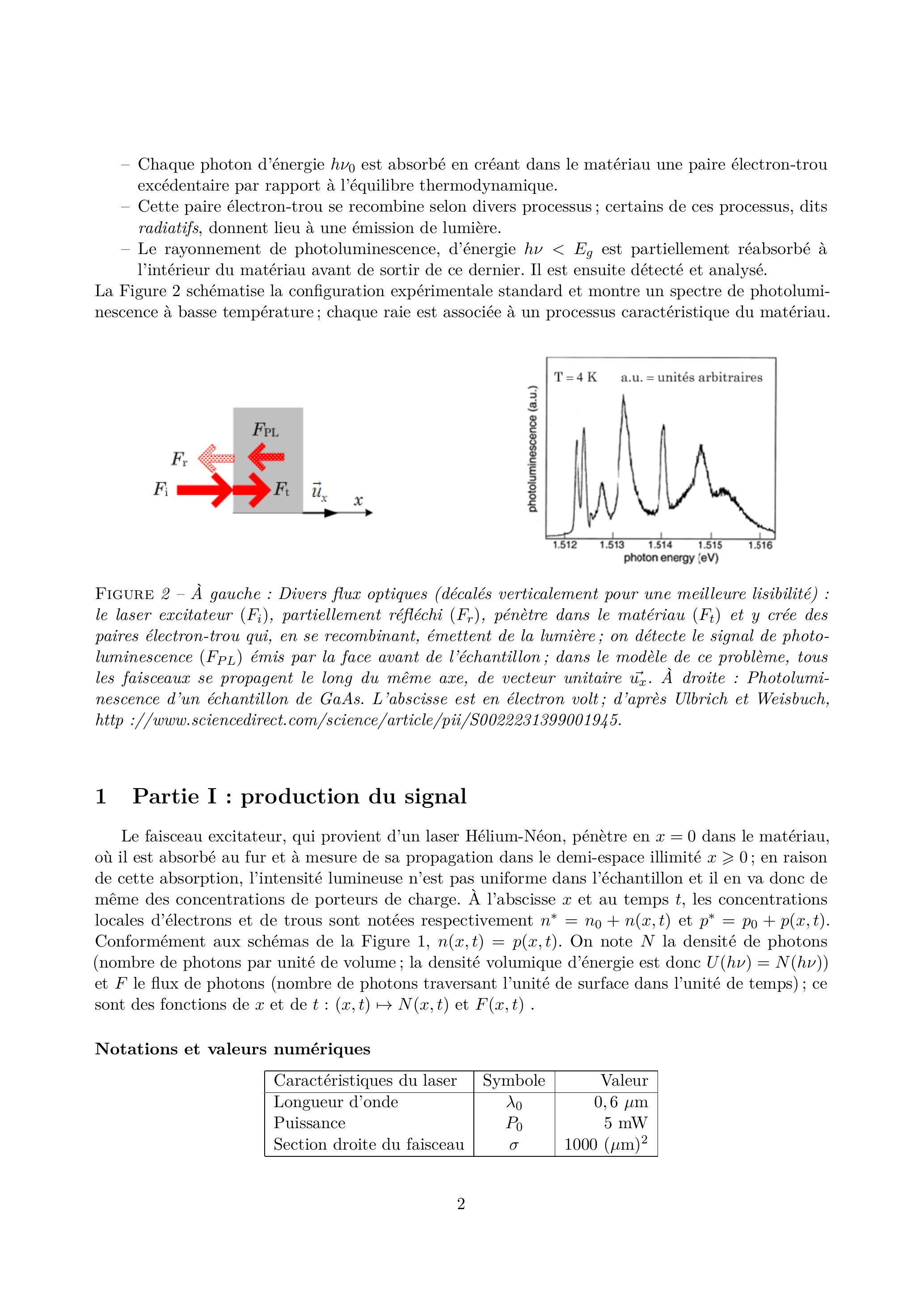 L'objet de ce problème est une étude de la photoluminescence, qui est la radiation émise, en plus de l'émission thermique, par un système physique soumis à une excitation optique.